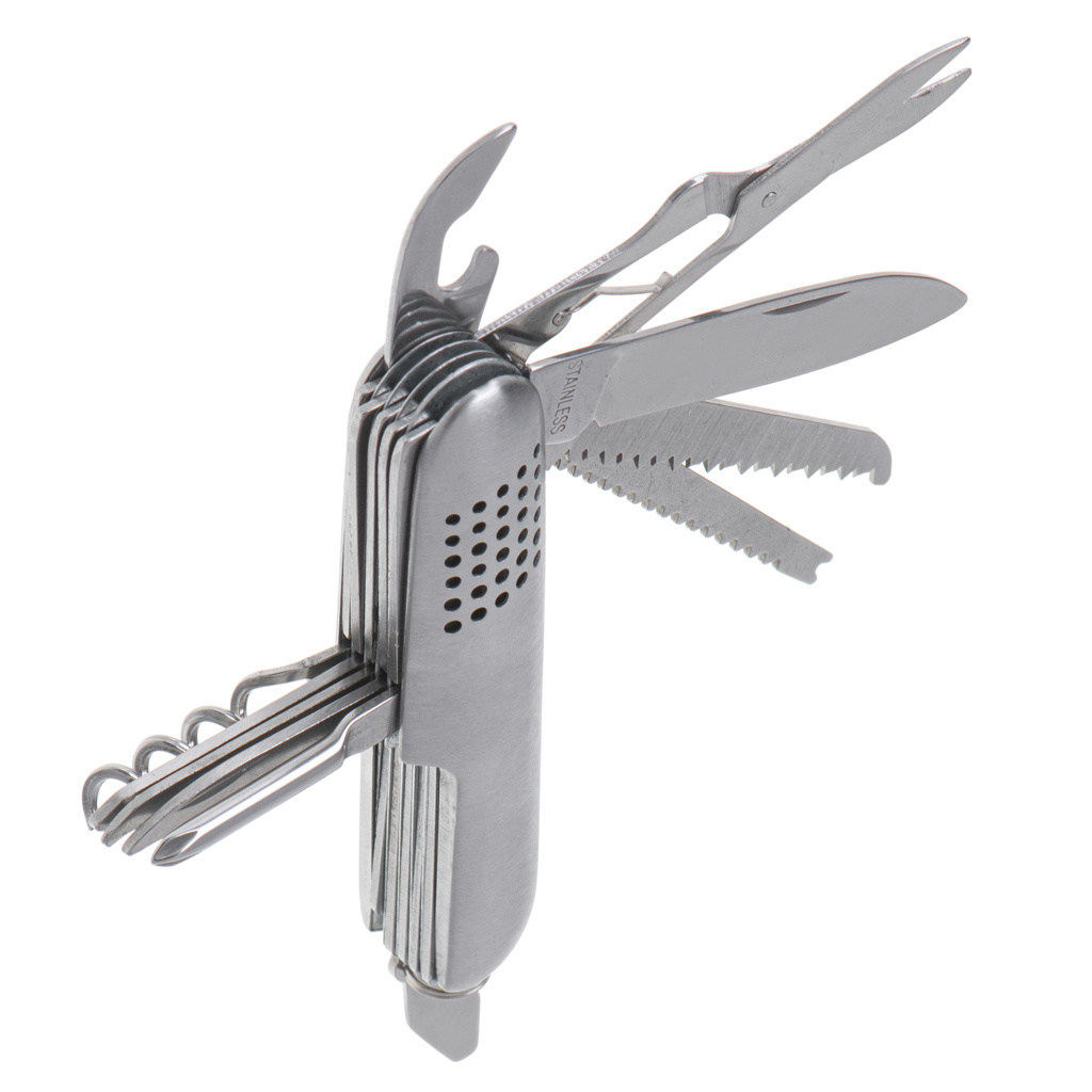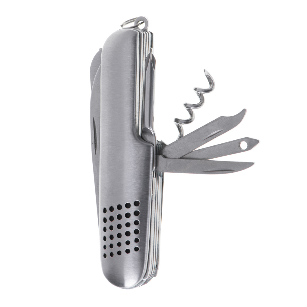 Praktický multifunkční kapesní nůž, který vám zaručí nepostradatelnou pomoc v každé situaci. Počet nožů: 12. Materiál: ocel. Rozměry složeného kapesního nože: 9 cm x 2 cm x 1,2 cm. Délka nože: 6,5 cm.