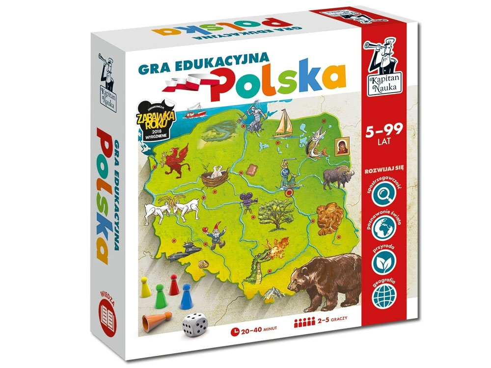 Kapitan Nauka Vzdělávací hra Polsko je atraktivní nabídkou s různými herními možnostmi pro hráče toužící po vzrušení od 5 let! Jednoduchá pravidla, nelítostná hratelnost a atraktivní grafické zpracování zaujmou děti, mládež i dospělé. Dobrodružná cesta, která vyžaduje bystrý zrak, reflexy, zvědavost na svět a zábavu. Řešte hádanky, hledejte nejzajímavější památky a plánujte si vlastní fascinující cesty po Polsku.