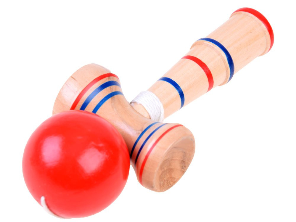 Kendama je jednoduchá hra, která pomáhá procvičovat přesné pohyby rukou. Hračka je vyrobena výhradně ze dřeva. Skládá se z dřevěné koule s otvorem, která je pomocí provázku připevněna ke kladivu s dutinami. Hra spočívá v odrážení dřevěné kuličky tak, aby se nakonec trefila na špejli v paličce. Hračka nabízí mnoho příležitostí k provádění různých druhů triků a žonglování, což podporuje hru a cvičí trpělivost. Vyklopte míč a pokuste se ho chytit na rukojeť. Hračka na procvičování zručnosti vám poskytne hodiny skvělé zábavy a zároveň vás naučí trpělivosti a vytrvalosti. Skvělá zábava nejen pro děti.