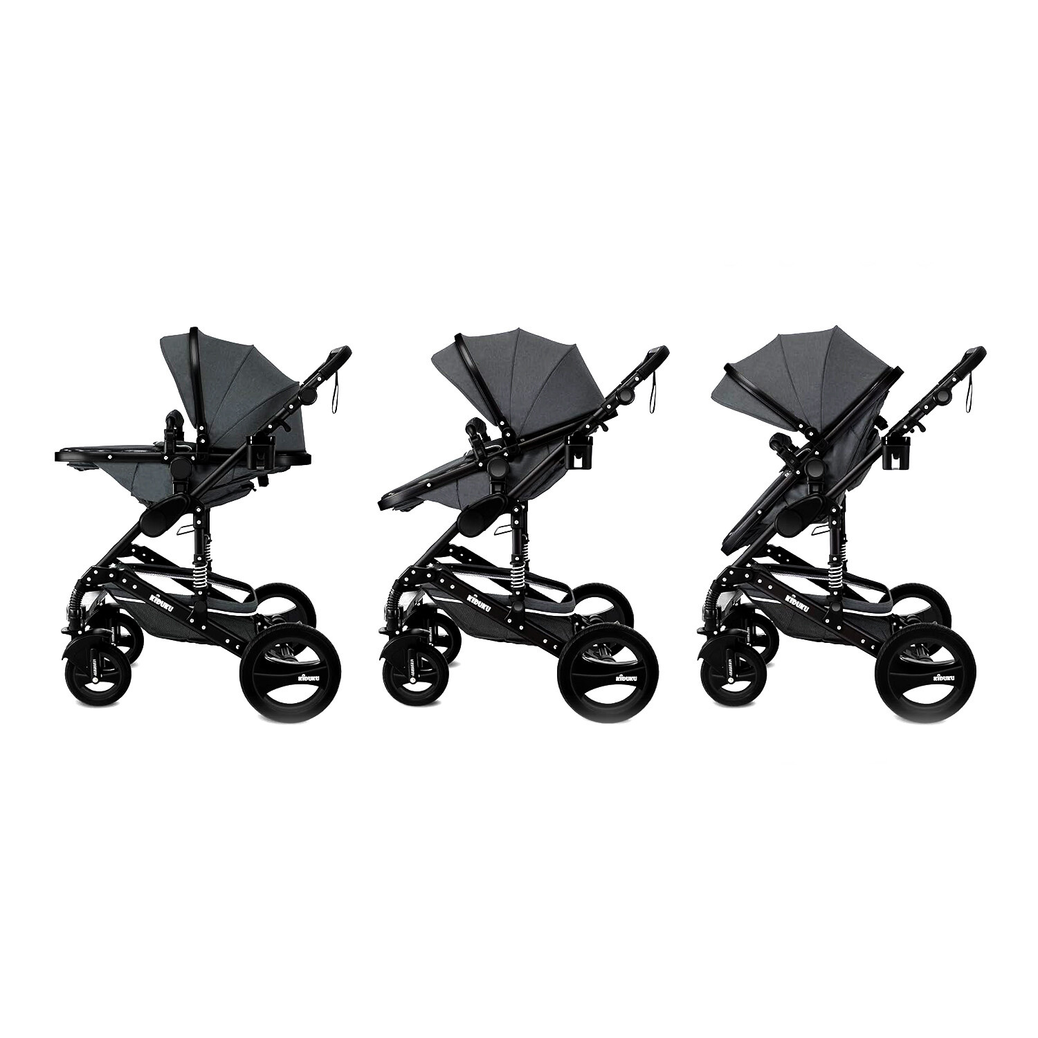 Kiduku Kombinovaný kočárek 3v1 Šedý/Černý