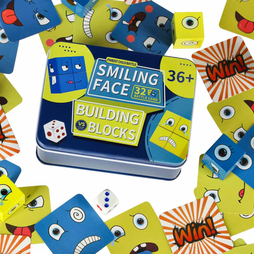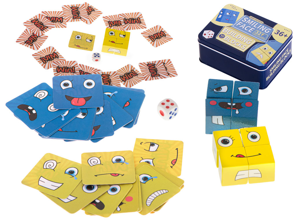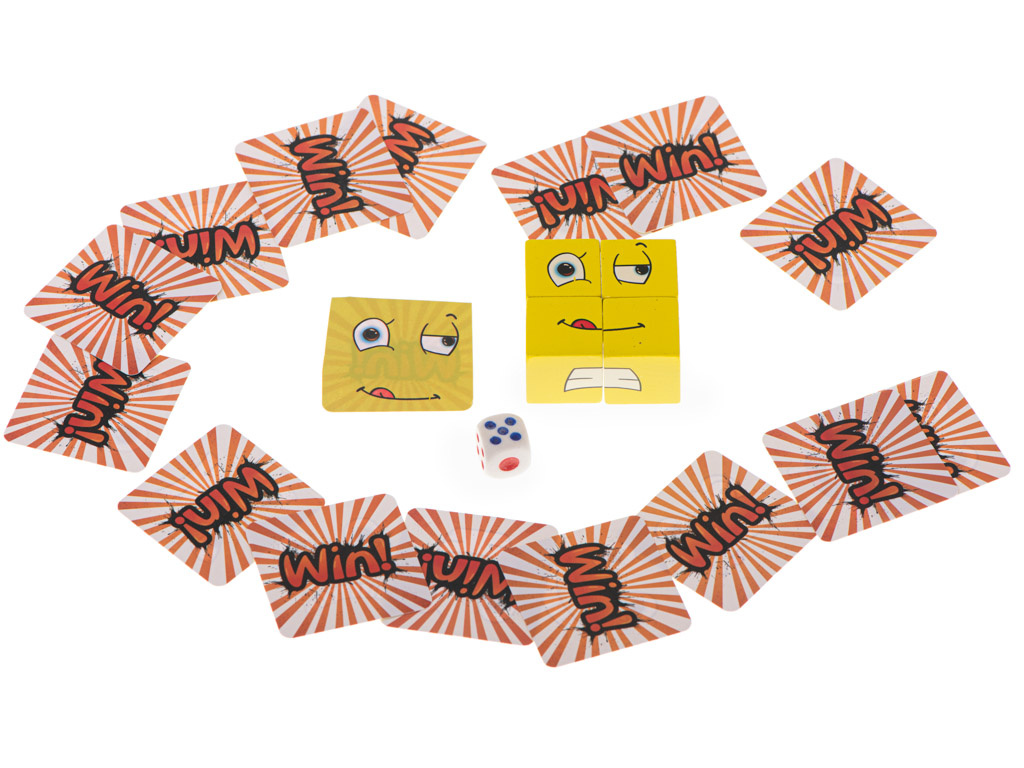Vytáhněte si jednu z karet se smajlíkem a pomocí kostek co nejrychleji vytvořte vyobrazený obličej.
