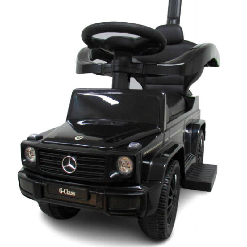 BARVA: ČERNÁ Dětský sportovní kočárek - model MERCEDES AMG G350 MUSIC+ CLAY MERCEDES licence Po odejmutí rukojeti, nánožníku a bezpečnostních zábran se z kočárku stane kočárek pro jízdu. Pozor! Zábrany neblokují volant.volantem lze otáčet jak u verze s tlačným zařízením, tak u verze pro jezdce!