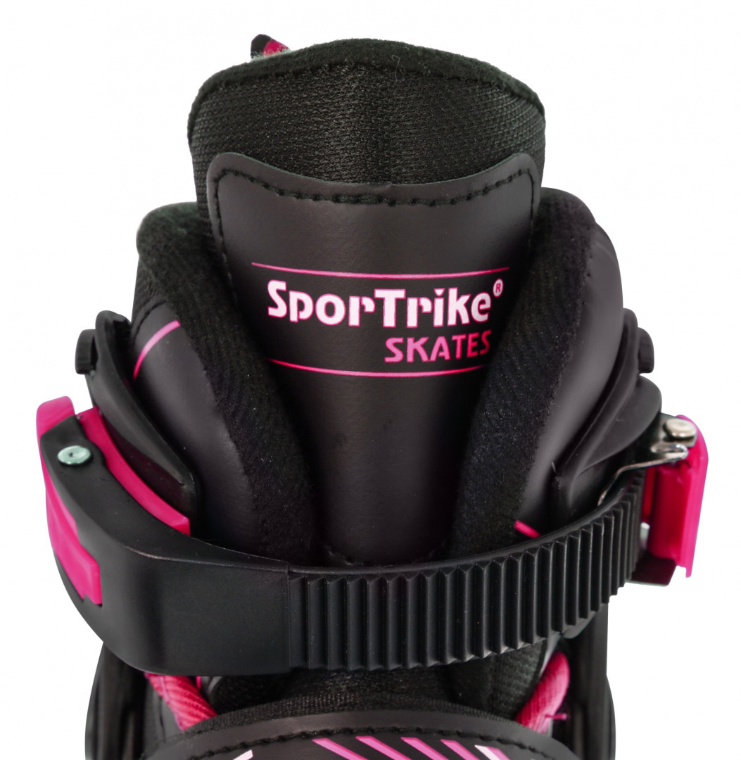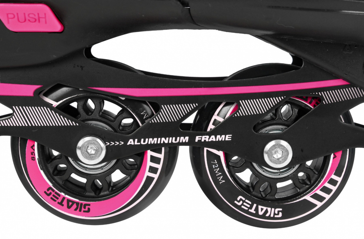| Boty | - 5stupňový systém nastavení velikosti stisknutím tlačítka (39-43) - vnitřní délka boty od 24 cm do 27,5 cm, - polotvrdá konstrukce zajišťující pružnost boty a bezpečnost kotníku - třísekvenční zapínání: - tkaničky - pásek na suchý zip - přezka (nastavení + ochrana proti otevření) - brzda v pravé brusli - ventilační systém - polopropustná membrána - tvarovaná stélka - stélka brusle vyplněná měkkou pěnou EVA pokrytá vnější vrstvou látky Velvet |