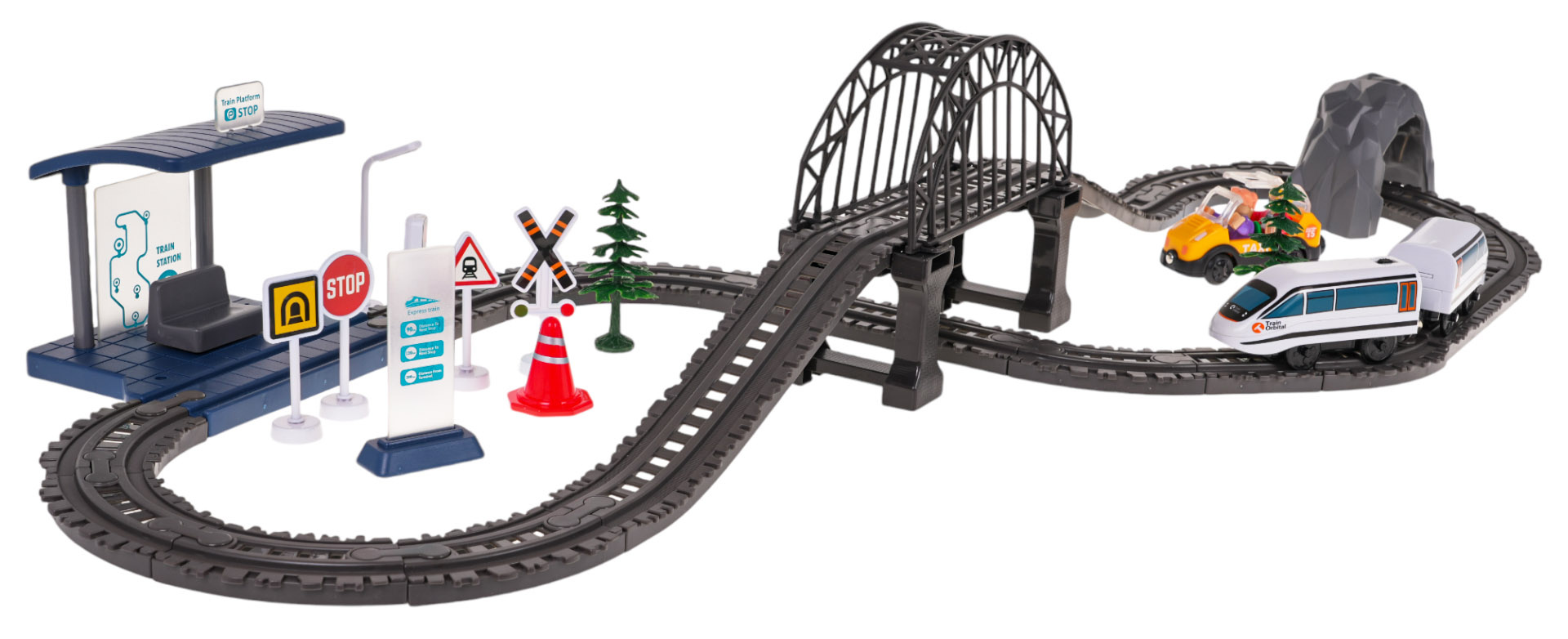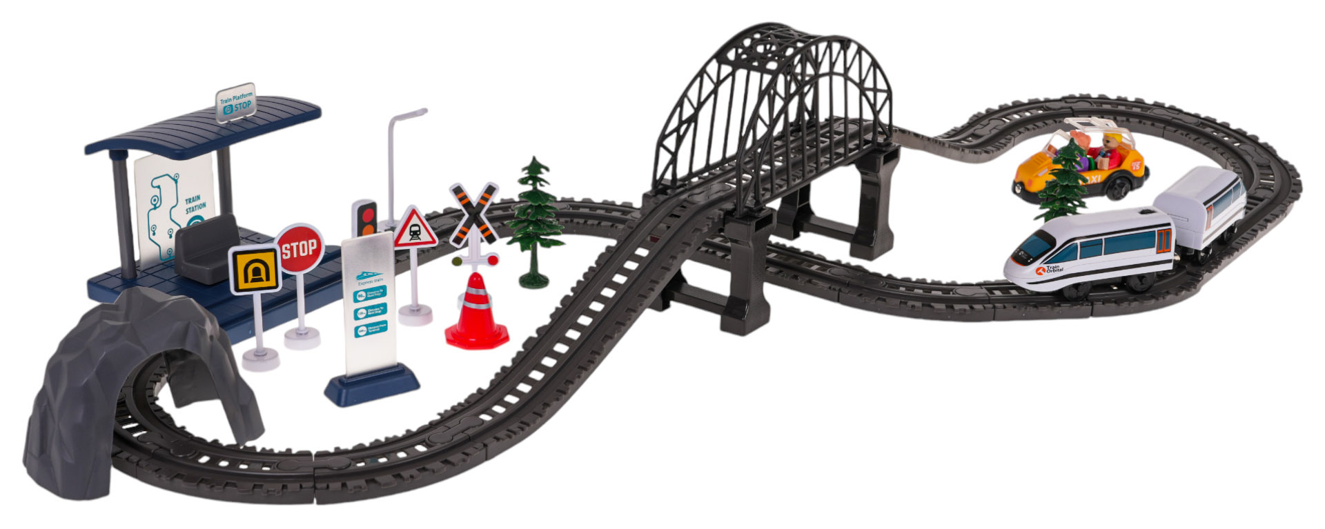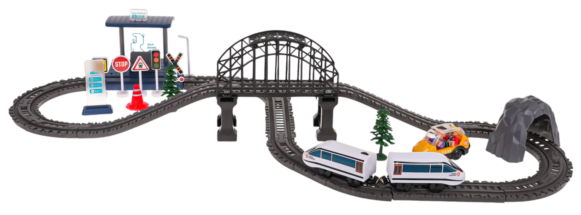 Sada vláčků s kolejemi a příslušenstvím pro děti od 3 let. Sada byla vyrobena z nejkvalitnějších materiálů, koleje mají pevné úchyty. Sada obsahuje 76 prvků: konstrukci tratí s mostem, tunelem a stanicí, vlak, dopravní značky, je zde také taxi s pasažéry. Vlak je napájen bateriemi typu 1 x AA 1,5 V (nejsou součástí balení), stanice bateriemi typu 3 x AG3 1,5 V (jsou součástí balení).