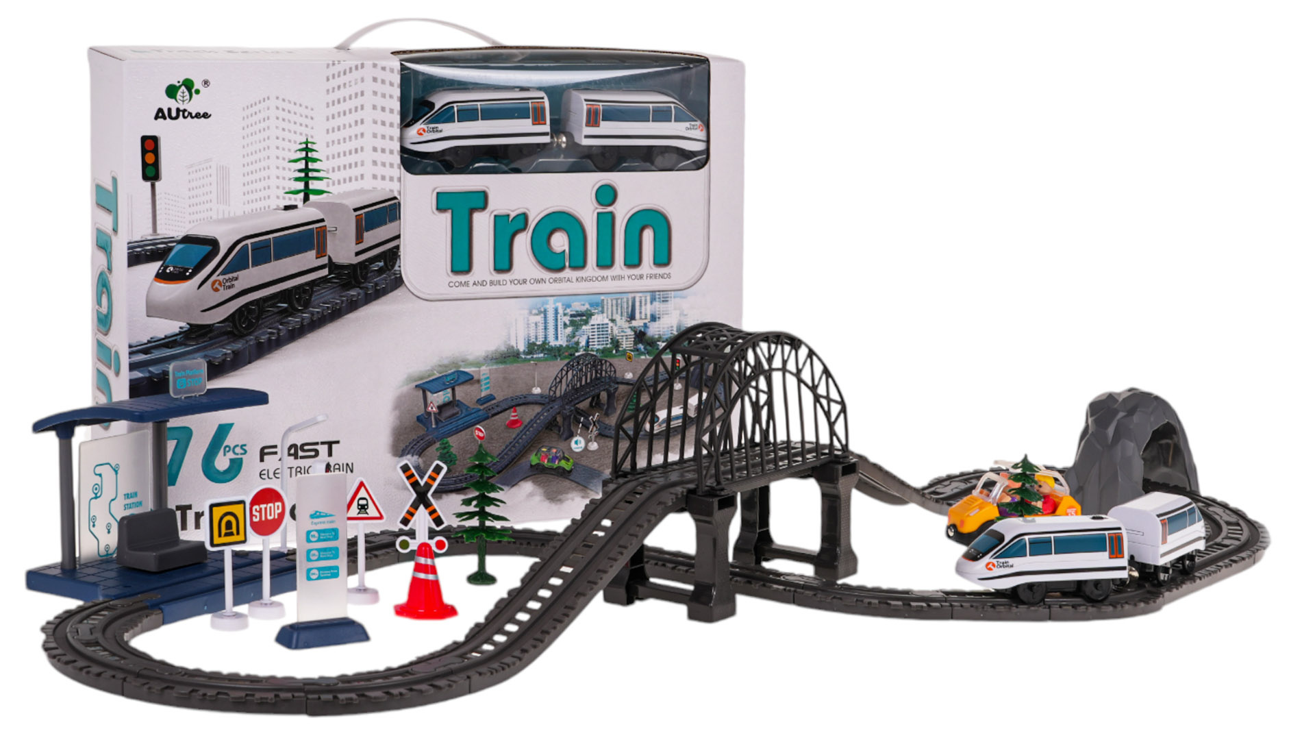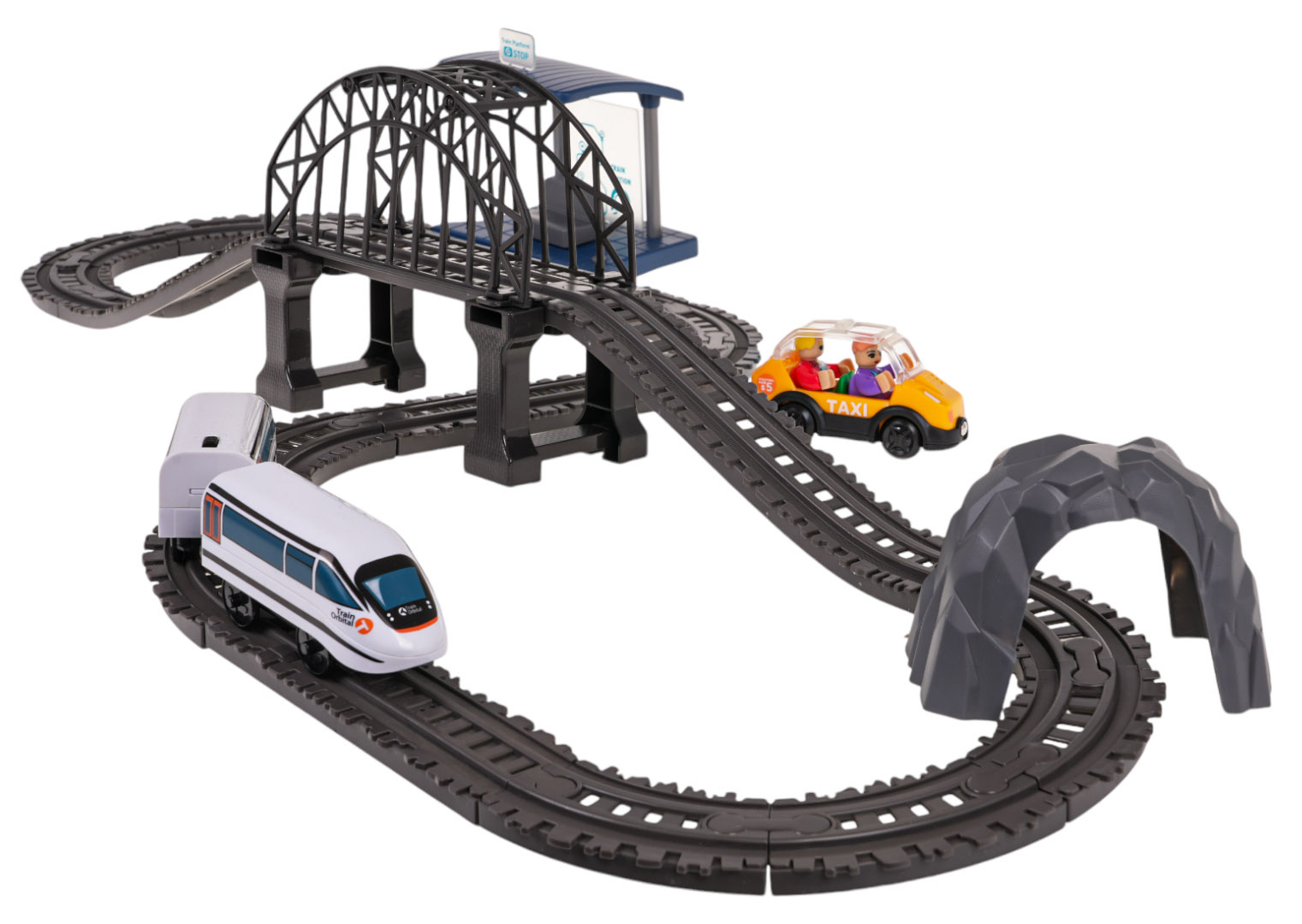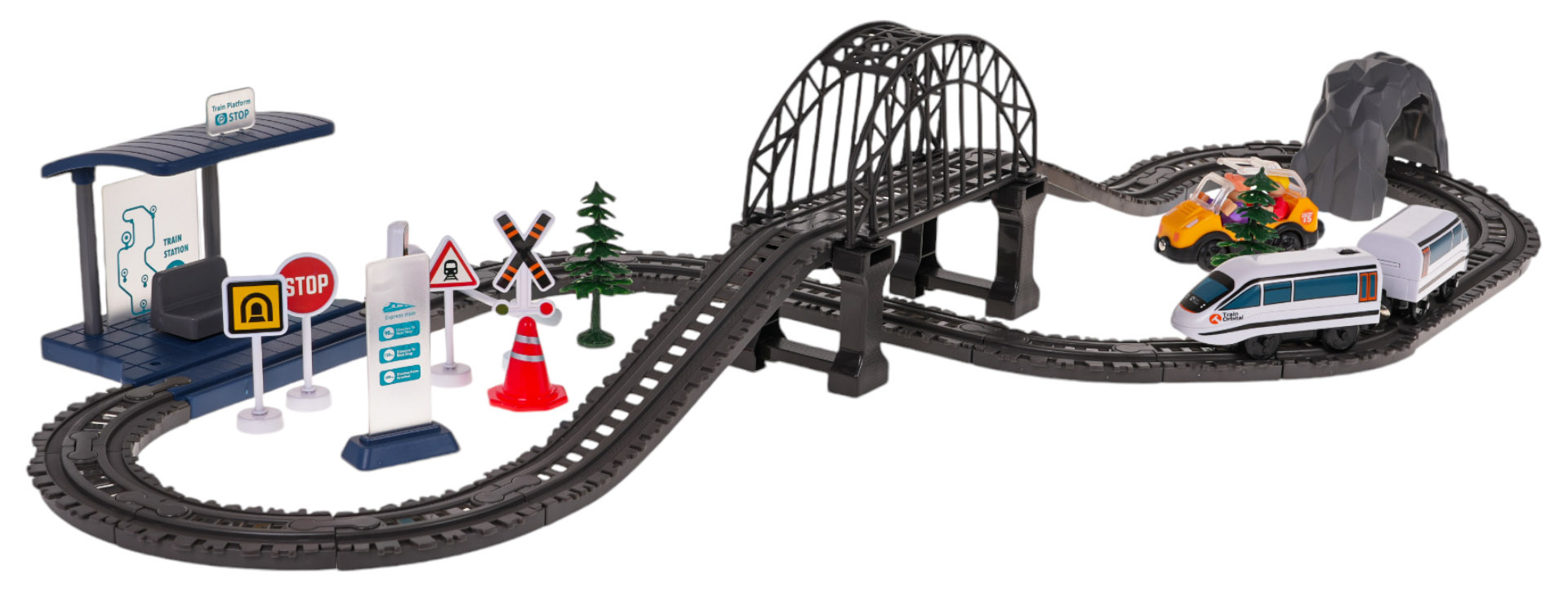 Sada vláčků s kolejemi a příslušenstvím pro děti od 3 let. Sada byla vyrobena z nejkvalitnějších materiálů, koleje mají pevné úchyty. Sada obsahuje 76 prvků: konstrukci tratí s mostem, tunelem a stanicí, vlak, dopravní značky, je zde také taxi s pasažéry. Vlak je napájen bateriemi typu 1 x AA 1,5 V (nejsou součástí balení), stanice bateriemi typu 3 x AG3 1,5 V (jsou součástí balení).