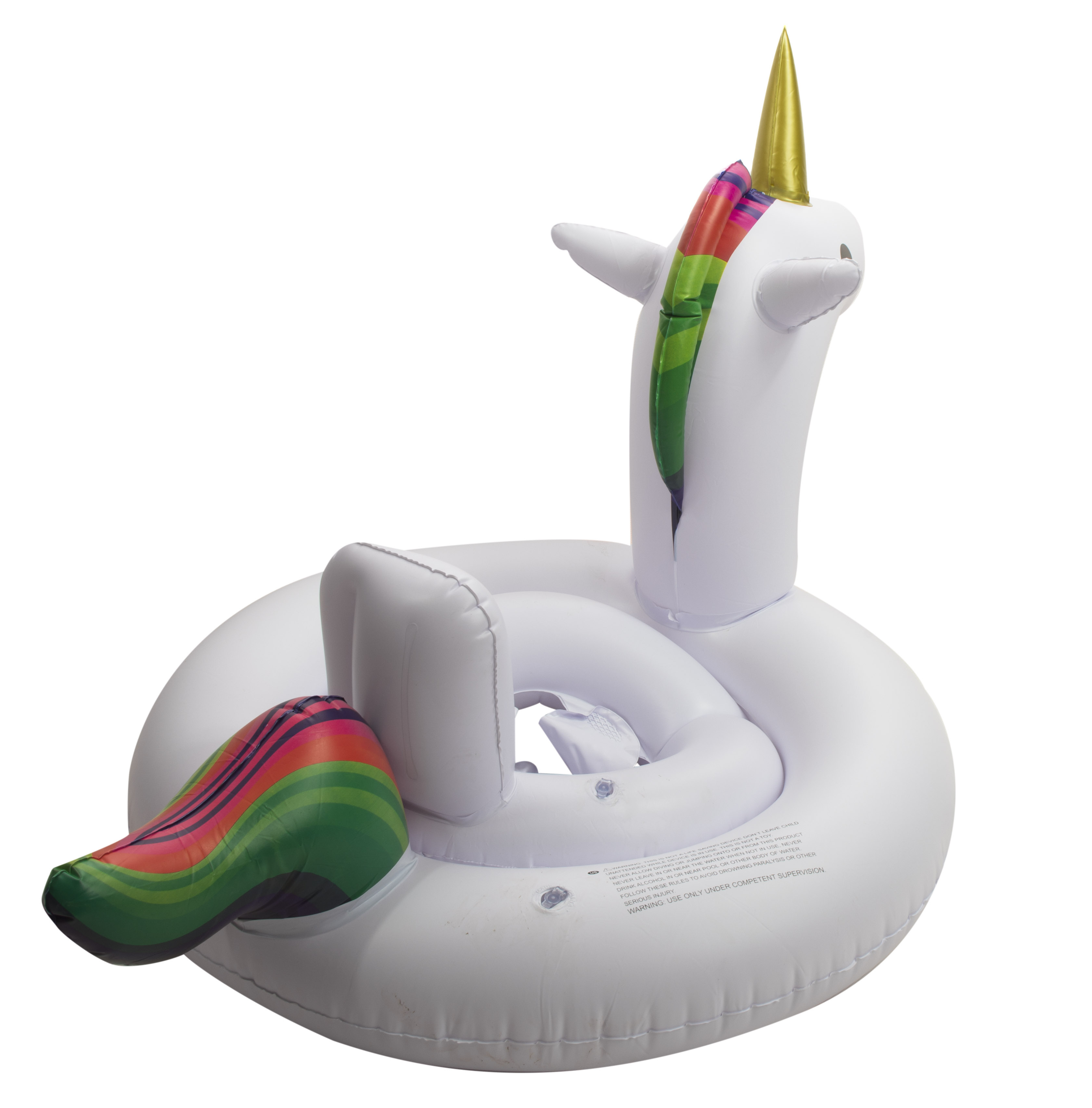 Nafukovací kolo se sedačkou pro děti v ve tvaru jednorožce, z vysoce kvalitního plastu PVC, zaručující trvanlivost.