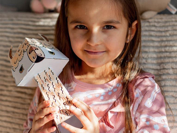 Seznamte se s velbloudím bratrancem! Když se rozzlobí, plive... Můžete mít slušnou, přátelskou lamu s hravě vyčesanou hřívou. Můžete ho vybarvit barvami, fixami nebo pastelkami a poté složit. Je čas si hrát!