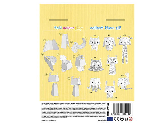 MONUMI je polská značka vytvořená týmem lidí, pro které je práce vášní a dětská radost hlavní odměnou za kreativní tvorbu hraček, které baví a učí. Pečlivý výběr skupiny odborníků, kteří materiály vyvíjejí, a to jak z obsahového, tak z uměleckého hlediska, směřuje k tomu, aby naše výrobky účinně ovlivňovaly duševní rozvoj dětí. MONUMI vytváří jedinečné papírové kreativní sady a omalovánky pro různé skupiny čtenářů s ohledem na jejich estetické a intelektuální potřeby.