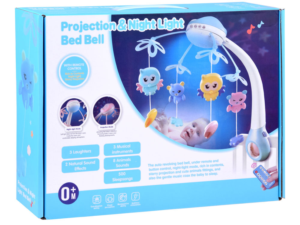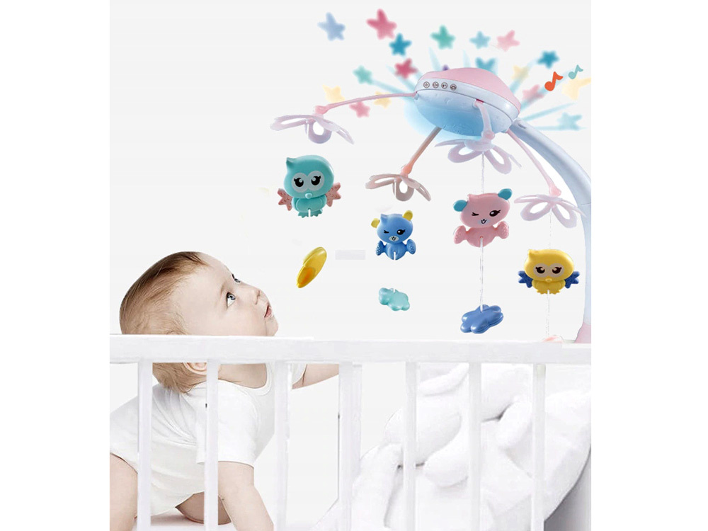 Dálkově ovládaný kolotoč s projektorem a zvukem potěší každou maminku i tatínka a poskytne malému dítěti mnoho krásných vizuálních a zvukových zážitků. Kolotoč může díky přiloženému hudebnímu boxu a projektoru doprovázet děti během spánku i bdění od prvních okamžiků jejich života a vytvářet tak fantastickou zvukovou a vizuální podívanou. Kolotoč s hrací skříňkou a hračkami - interaktivní hračka do dětského pokoje. Rozkošný kolotoč s hudební skříňkou a plastovými hračkami v podobě zvířátek, které na něm visí, se skvěle hodí do každé postýlky. Kolotoč je senzační způsob, jak zaujmout batole, které se v postýlce vrtí a občas se nudí. Melodie, zvuky noci vložené do hrací skříňky jsou velmi jemné a klidné, ideální ukolébavka pro batole.