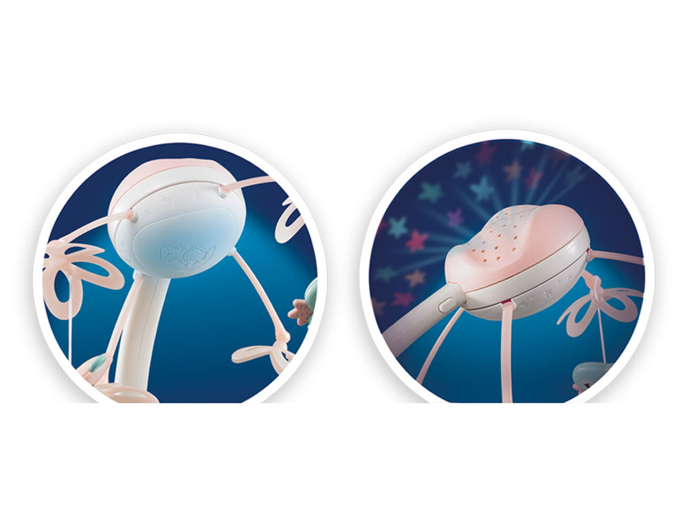 Batolata budou nadšená pohledem na barevné přívěsky nebo projekční displej - robustní upevnění a stabilní konstrukce zajišťují odolnost a bezpečnost. Kolotoč se velmi snadno sestavuje a ovládá. Hodí se do většiny dětských postýlek.