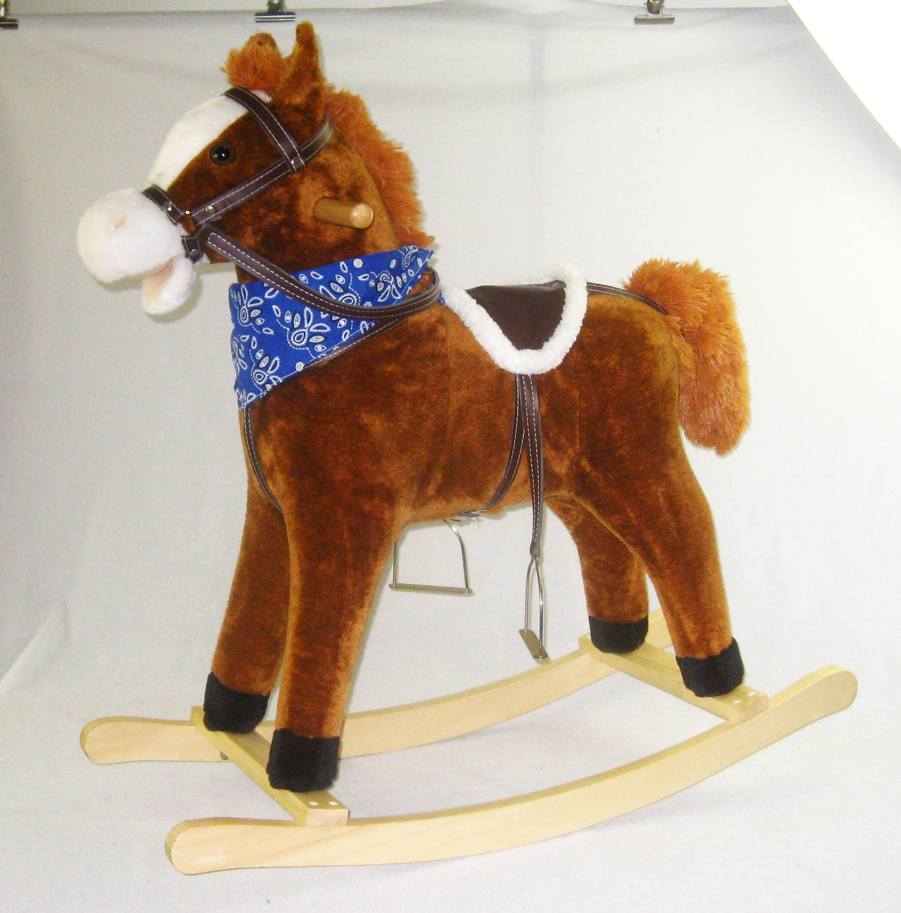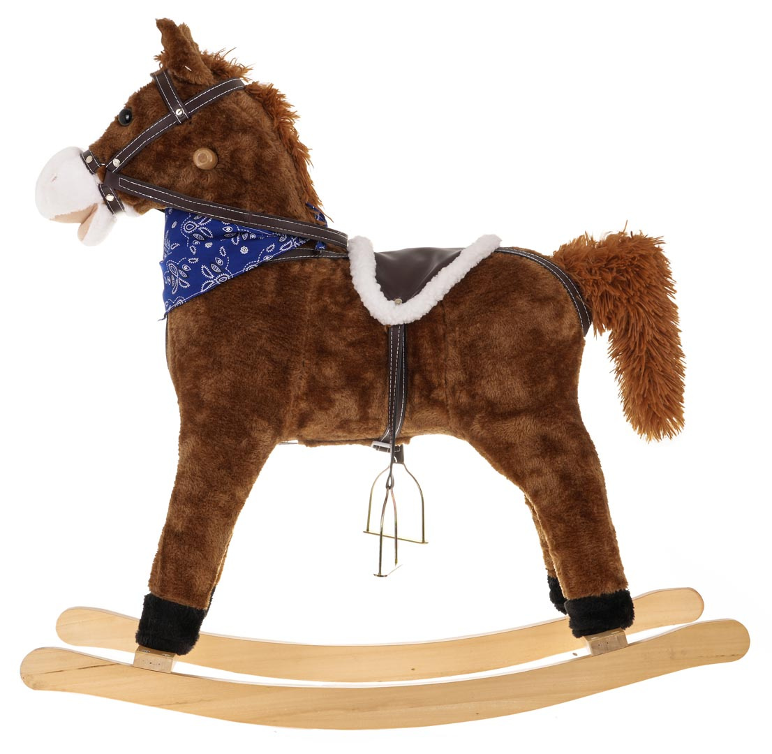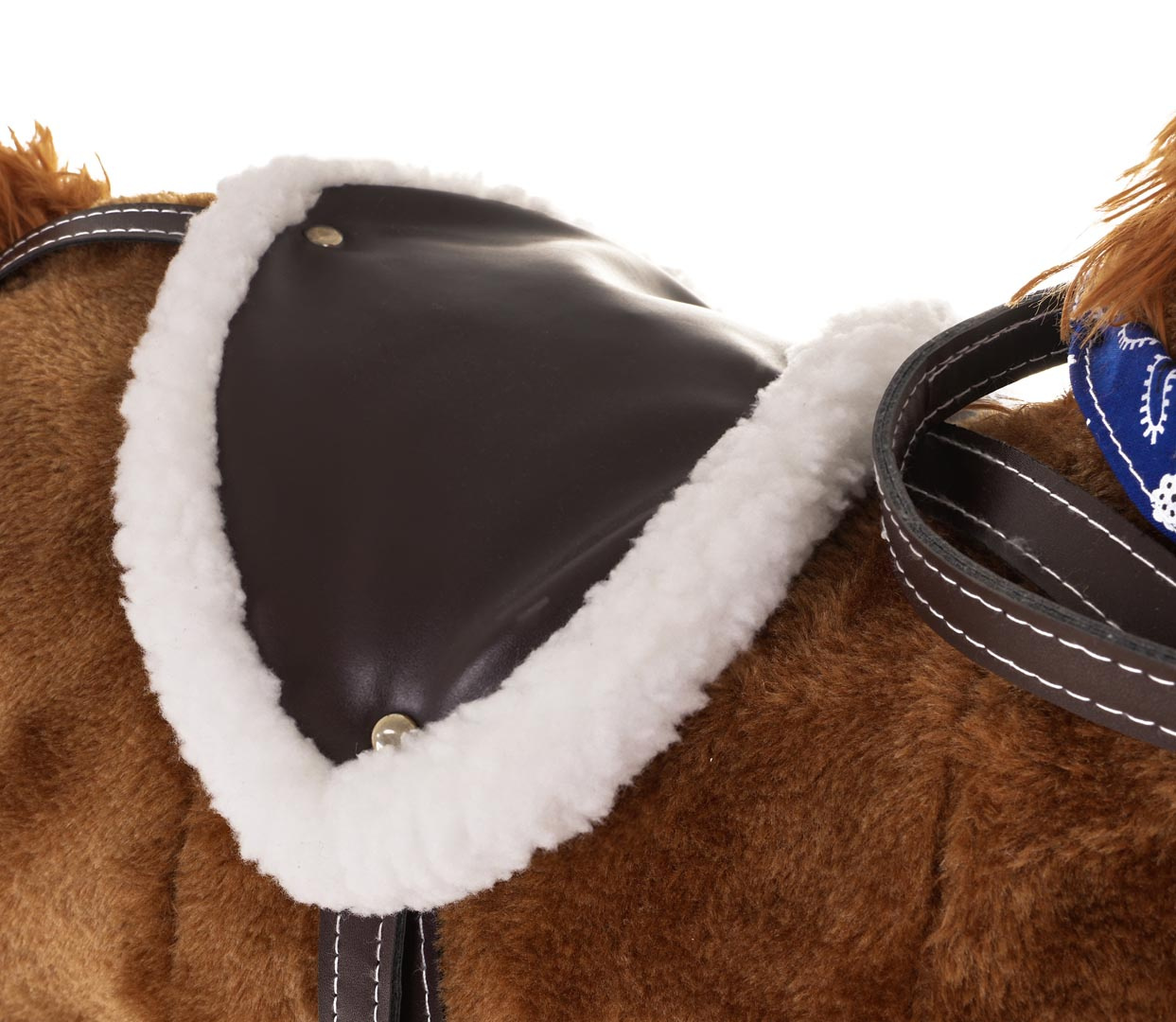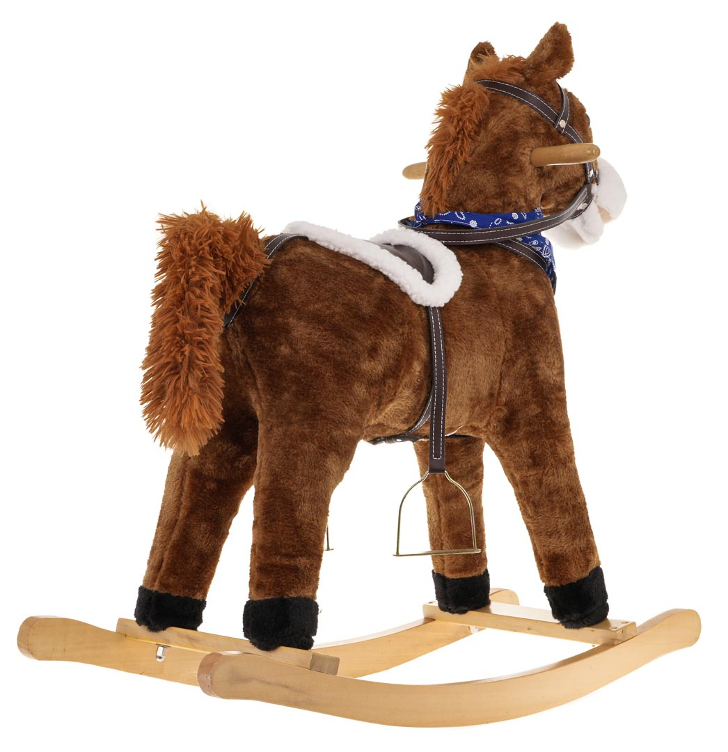 Plyšový houpací koník se zvukovými efekty pro děti od 3 let.Kůň se jistě zalíbí každému malému dítěti. Je měkoučký na dotek, má sedlo z ekokůže se třmeny, otěže a šátek na krku. Na pravém a levém uchu koně se nacházejí senzory, které spouštějí zvuky řehtání a cvalu, pohybují ocasem a tlamou. Hračka je napájena bateriemi typu 3 x AA 1,5V, baterie nejsou součástí balení.