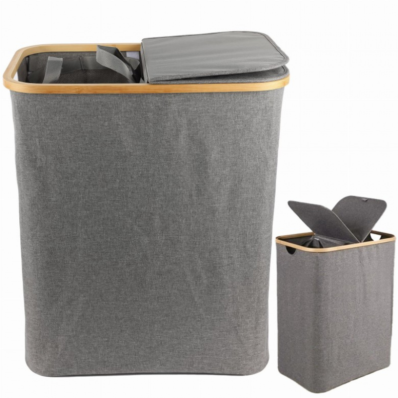 Je vyroben z odolného materiálu a zaručuje dlouhou životnost. Pojme velké množství špinavého prádla a udržuje pořádek v prádelně nebo koupelně, má 2 přihrádky a víko. Koše ze středu lze vytáhnout. Poskytuje robustní konstrukci a přirozený, příjemný vzhled. Šedá barva dodává eleganci a jemnost a hodí se do různých stylů interiérů. Díky svému estetickému vzhledu je nejen praktickým prvkem, ale také stylovým doplňkem interiéru.