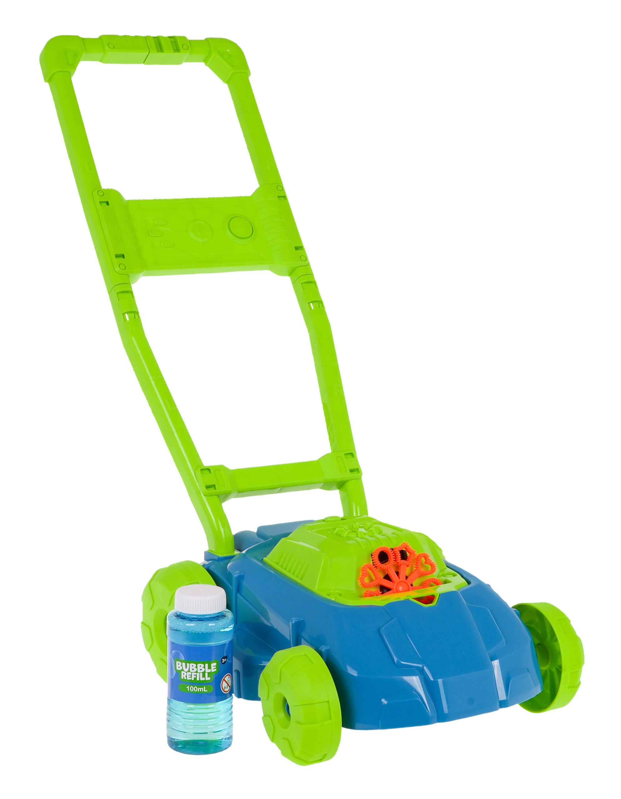 Sekačka na trávu s funkcí foukání mýdlových bublin je určena pro děti od 3 let. Hračka má pohodlnou, stabilní rukojeť a čtyři pohyblivá kolečka, díky nimž ji může dítě snadno řídit. Největším lákadlem sekačky je zabudovaný generátor mýdlových bublin. Stačí naplnit nádržku na přední straně sekačky tekutinou na mýdlové bubliny a můžete se těšit na krásně barevné bubliny. Součástí sady je tekutina na mýdlové bubliny. Hračka je napájena 4 bateriemi AA 1,5 V, baterie nejsou součástí balení.