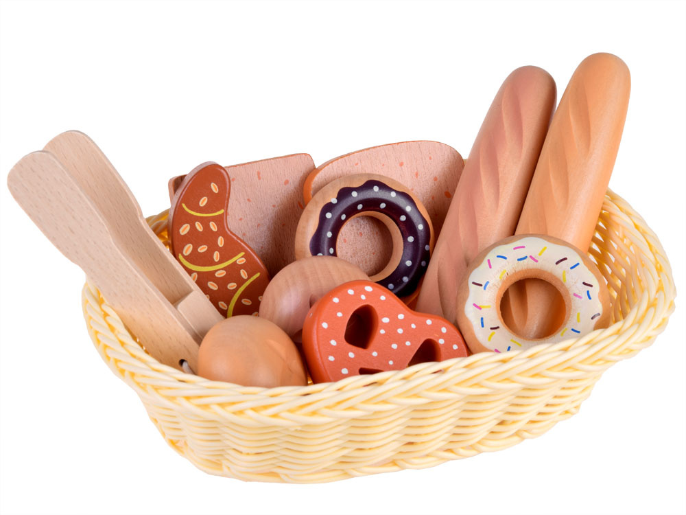 Košík na chléb je dřevěný výrobek, který umožní každému dítěti připravit chutnou snídani pro panenky, medvídky a další hladové děti.