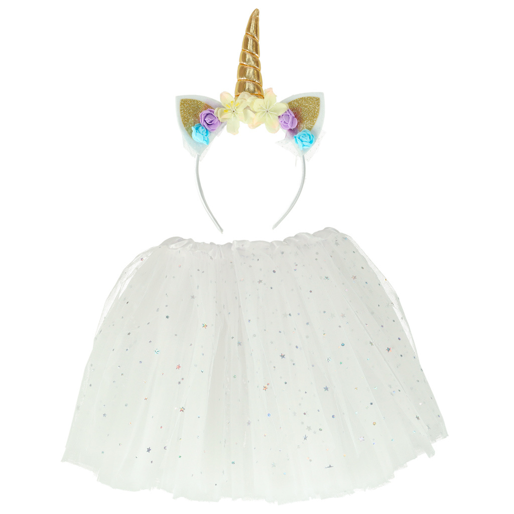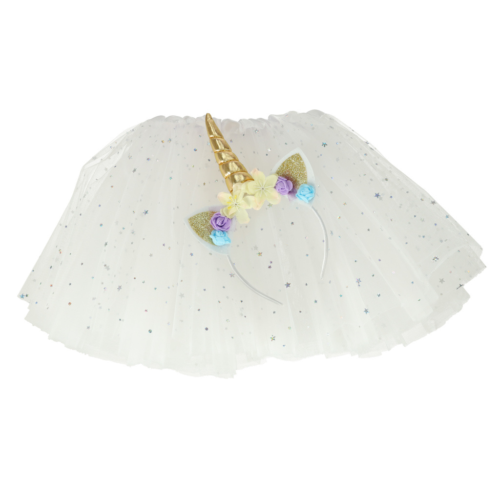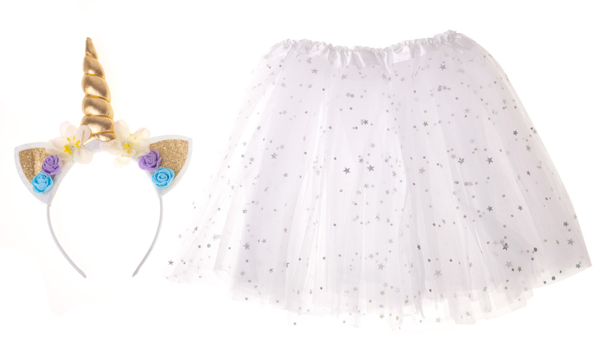 Roztomilá sukýnka nesmí žádné holčičce v šatníku chybět! Sukénka je určena pro holčičky ve věkovém rozmezí 3-10 let (104-146 cm), obvod pasu 48-80 cm. Tento úchvatný modrý kousek je zdoben oslnivými flitry. Součástí této sady je senzační čelenka jednorožce s duhovým rohem a ušima! Staň se hvězdou karnevalového večírku díky této sukýnce.