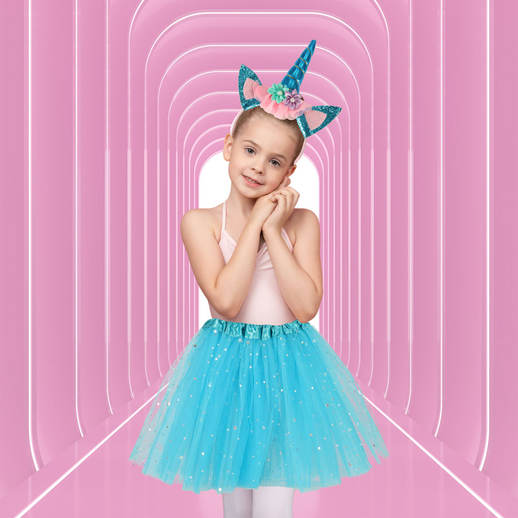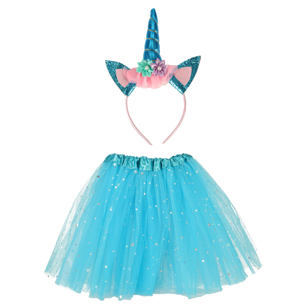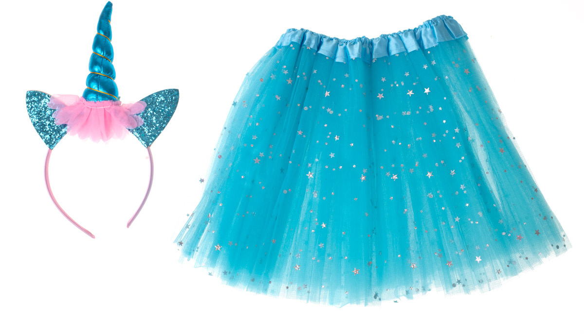 Roztomilá sukýnka nesmí žádné holčičce v šatníku chybět! Sukénka je určena pro holčičky ve věkovém rozmezí 3-10 let (104-146 cm), obvod pasu 48-80 cm. Tento úchvatný modrý kousek je zdoben oslnivými flitry. Součástí této sady je senzační čelenka jednorožce s duhovým rohem a ušima! Staň se hvězdou karnevalového večírku díky této sukýnce.