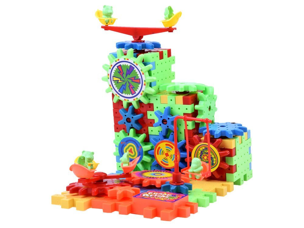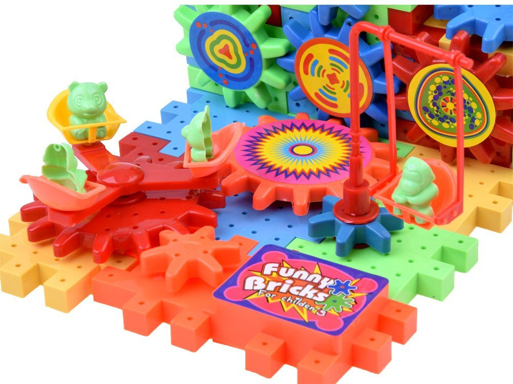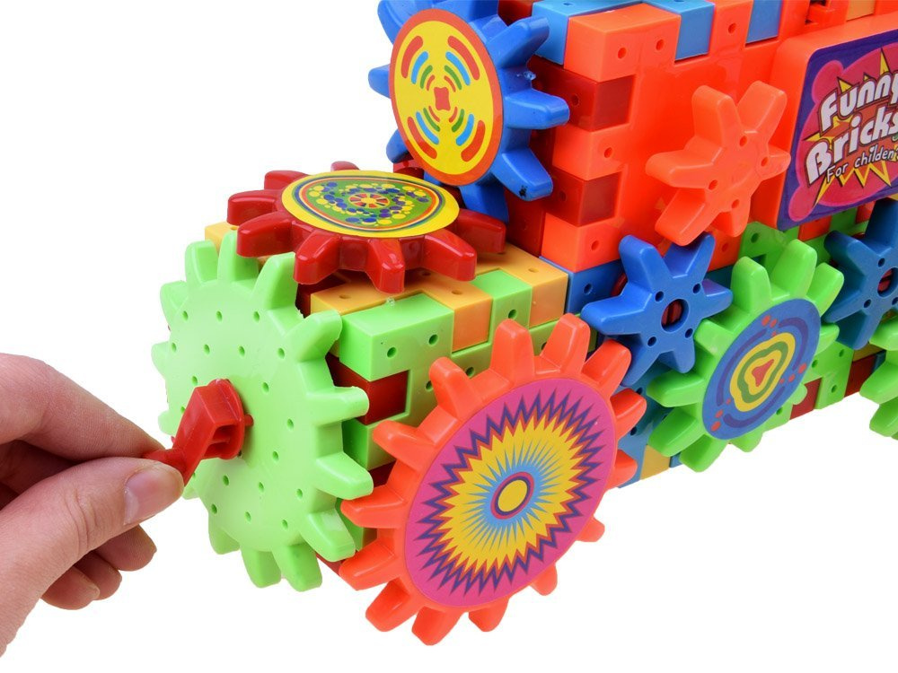 Skvělá zábava pro děti rozvíjející manuální zručnost, učí je manipulovat s předměty, přiřazovat je k sobě, učí je rozpoznávat tvary a barvy. Bloky ideálně poskytnou vašemu dítěti volný čas během dlouhých podzimních a zimních večerů. Živé barvy přitahují pozornost dítěte. Souprava se dodává se samolepkami, které nalepíte na vybraná ozubená kola.
