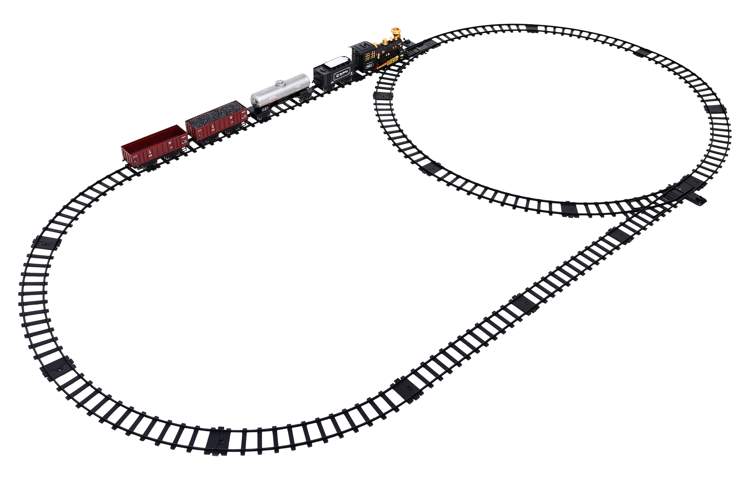 | | Úžasný vláček s kouřovou funkcí a zvuky jízdy je určen pro děti od 5 let. Hračka je napájena dobíjecí baterií typu 3,7 V, která je součástí sady. Baterie je umístěna v lokomotivě. Trasa železnice má elipsovitý tvar s vnitřním kruhem o rozměrech přibližně 1,5 km. 213 cm x 106 cm. Za jízdy lokomotiva vypouští kouř z komína (po doplnění vody - včetně vodní pipety) a navíc svítí světlo umístěné v přední části. Dráhy se snadno spojují, takže jsou bezpečné a robustní. |