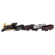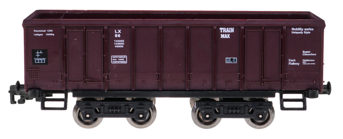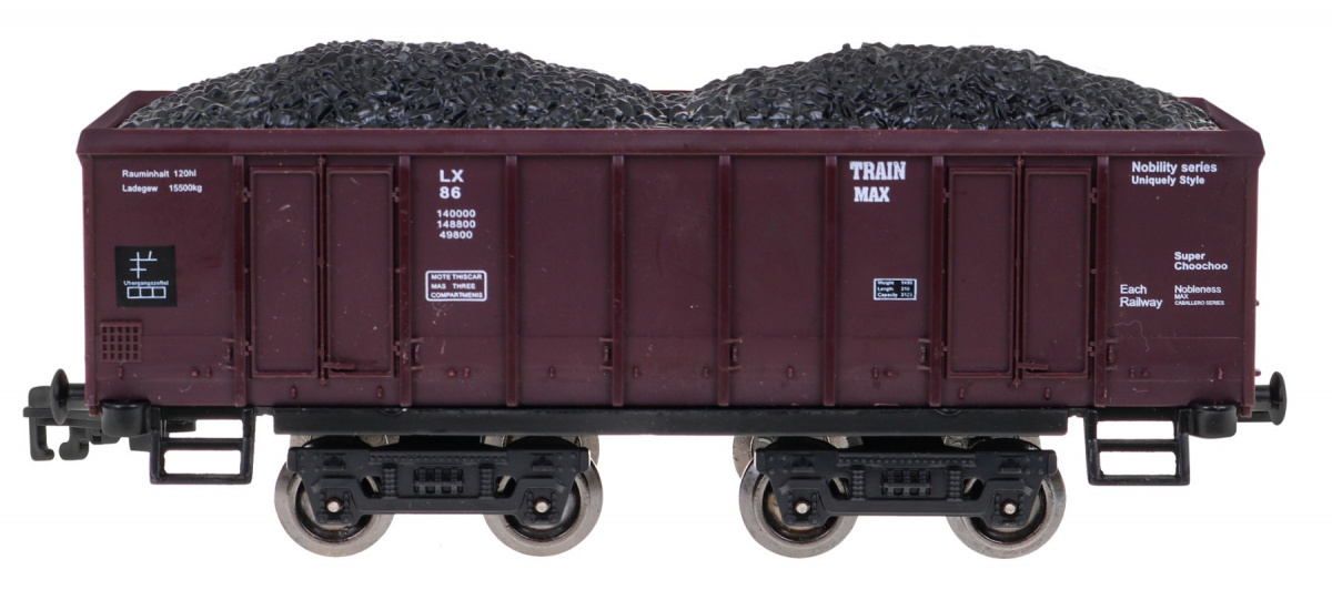 | - lokomotiva cca 23 cm x 6 cm x 10 cm, - nákladní vagóny cca. 15 cm x 6 cm x 8 cm, - cisternový vůz cca. 24 cm x 6 cm x 9 cm, - trasa kolejí cca. 213 cm x 106 cm, - balení cca. 67,5 cm x 38,5 cm x 8 cm. | |
