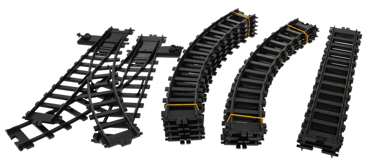 | | - lokomotiva, - 3 nákladní vagony, - cisternový vůz, - součásti kolejí, - vodní pipeta. |