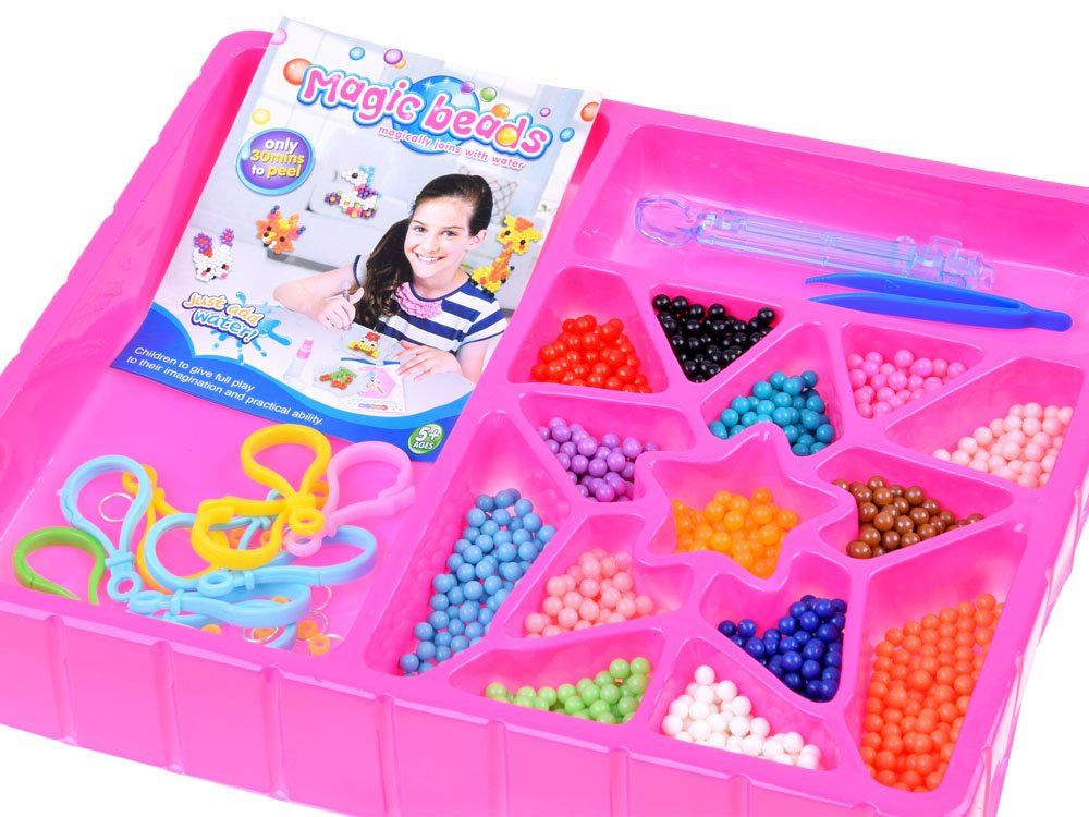 Kouzelná sadavodních korálků je kreativní sada pro vytvoření krásného obrázku vlastníma rukama. Sada obsahuje hotové vzory, takže bude snazší začít hrát. Uspořádané korálky můžete postříkat vodou a vytvořit z nich kroužek na klíče nebo 3D figurku. Hračka ze série DIY. Skvělá zábava nejen pro nejmenší. Nabídka pro nápadité a zvídavé děti. Sada nám dává neomezené možnosti k vytvoření vlastního světa plného živých barev a neobvyklých nápadů. Použijte svou představivost a efekt vás překvapí.