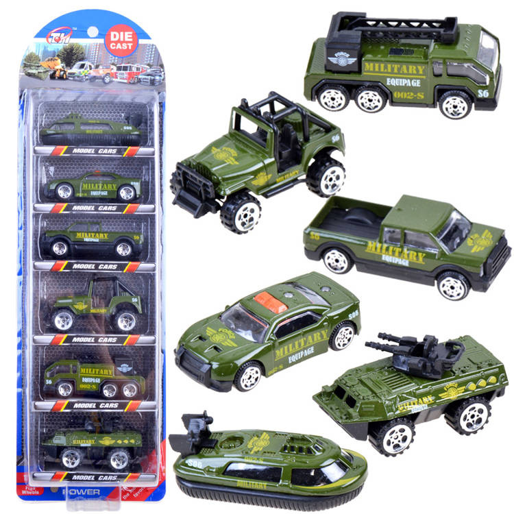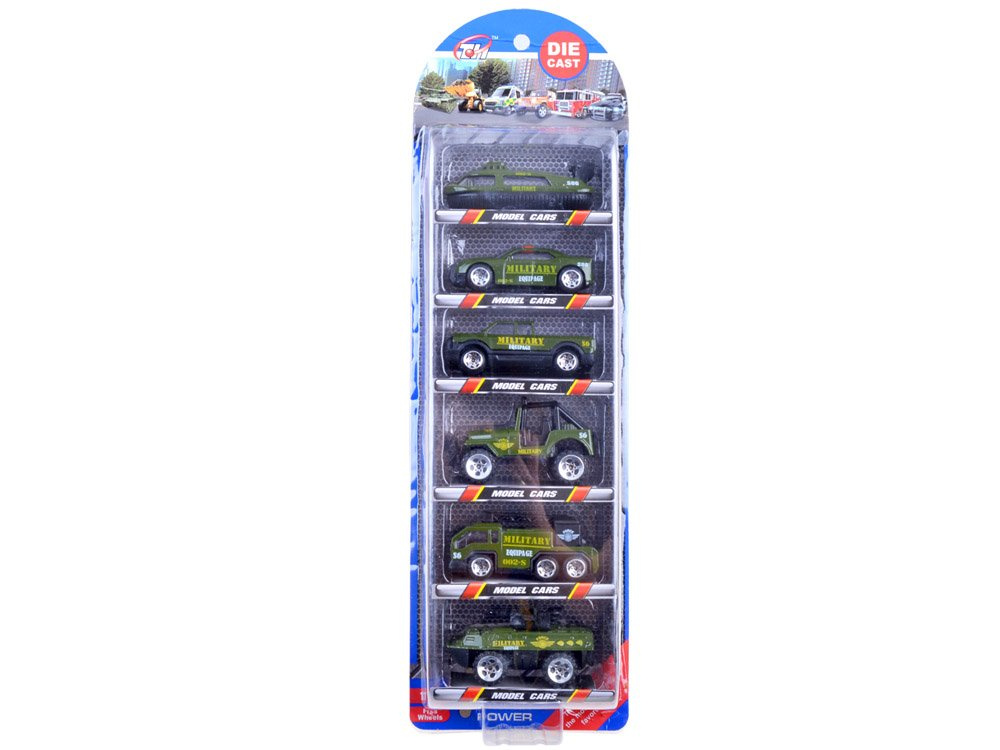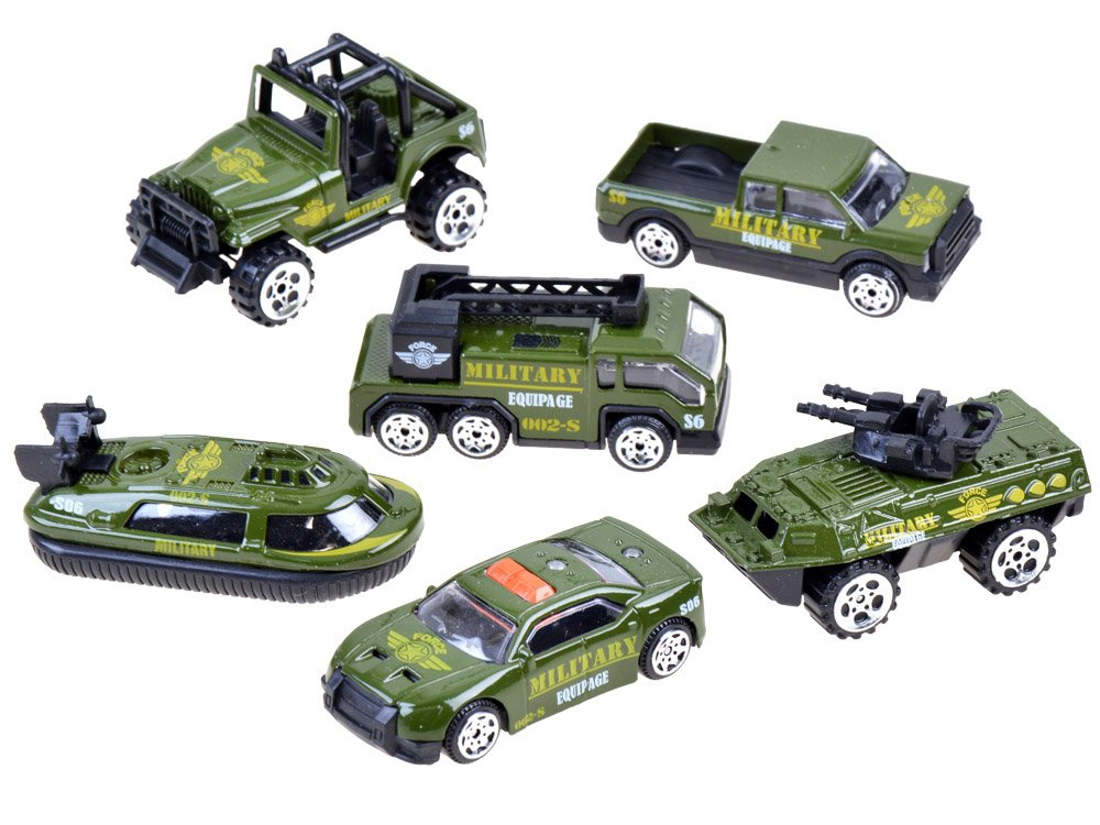 Sada 6 autíček - armáda je tou nejlepší volbou pro každého, kdo se nebojí výzev a statečně čelí jakémukoli nebezpečí, stejně jako vojáci. S pomocí této sady bude každý chlapec schopen zachránit své hračky z jakýchkoli potíží. Kovová autíčka mají plastové pohyblivé doplňky.