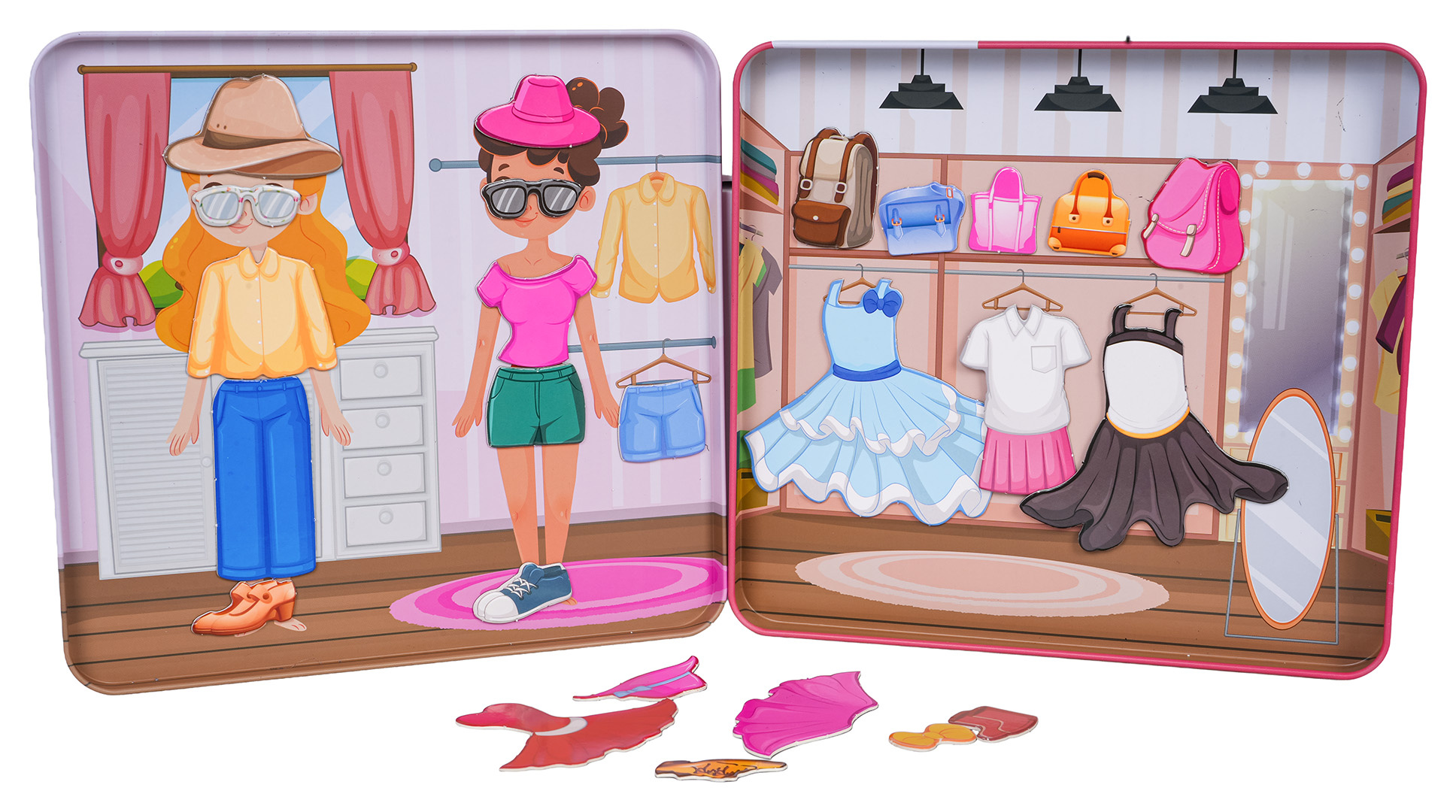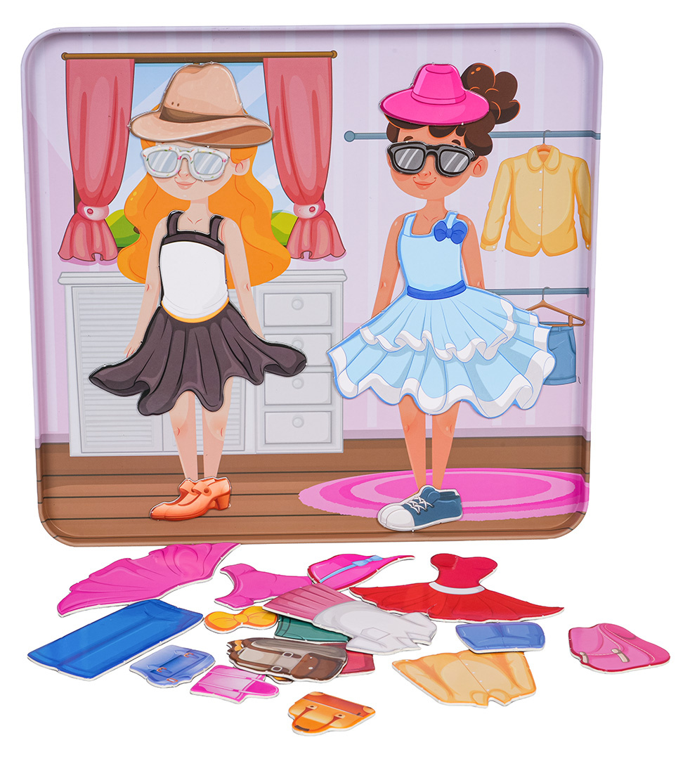 Magnetická sada stylistky/stylisty pro děti starší tří let. Sada se skládá z 25 magnetických prvků. Modelky nacházející se na víčku krabice lze oblékat podle vlastního vkusu. Sada rozvíjí kreativitu, manuální dovednosti a představivost. Sada je vyrobena zcela z magnetických prvků, takže ji lze používat kdekoli, bez obav ze ztráty dílů.
