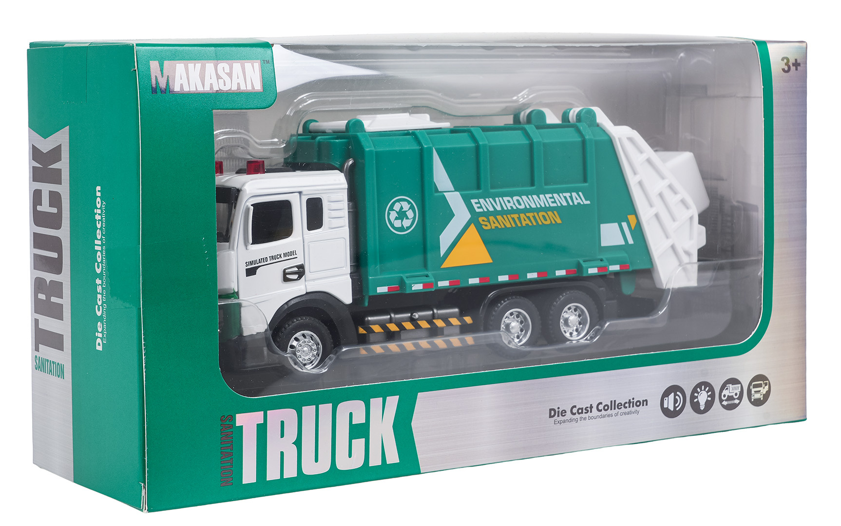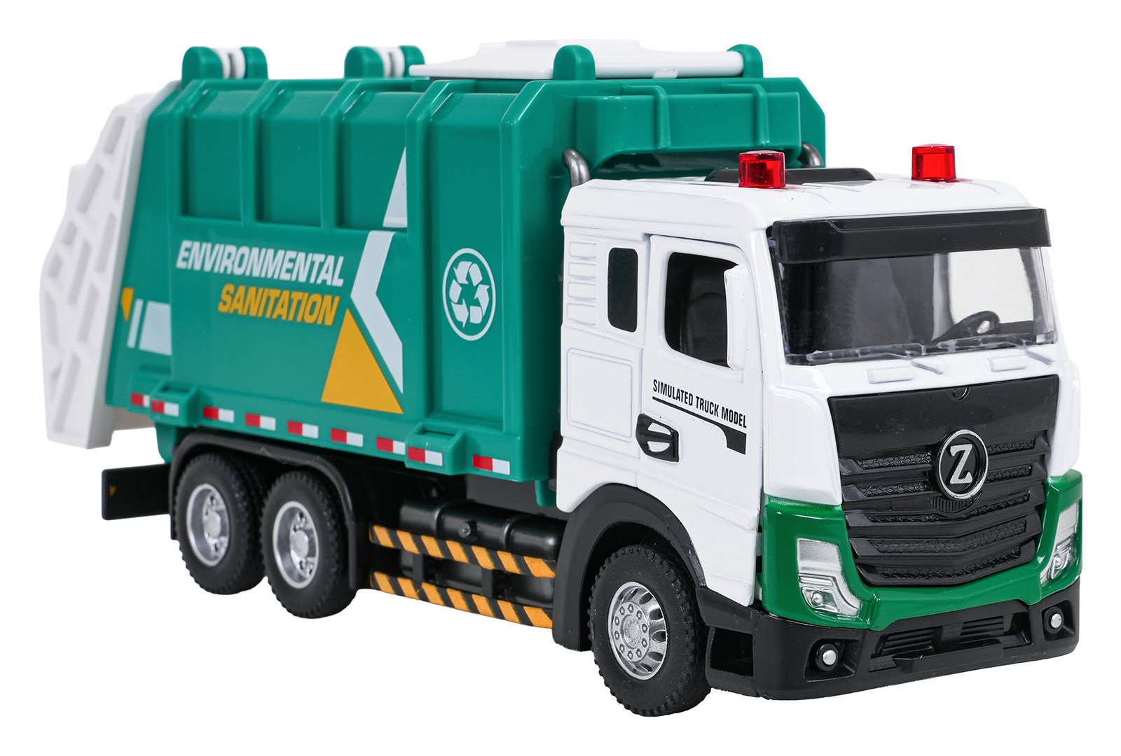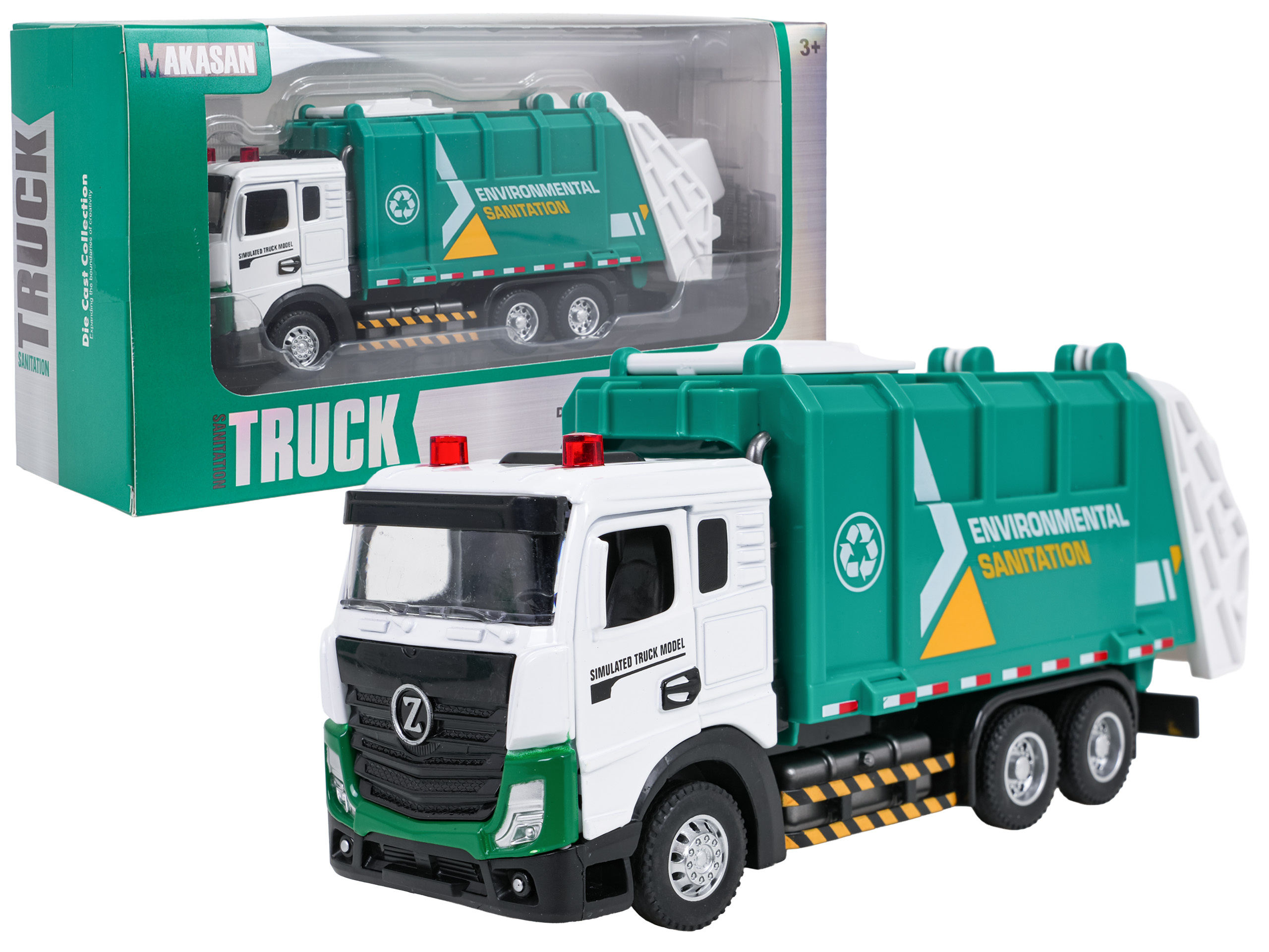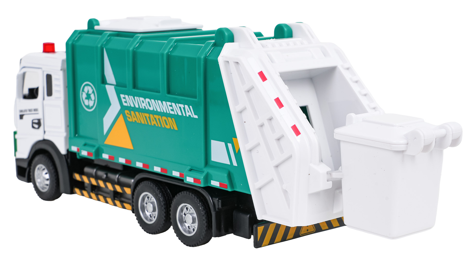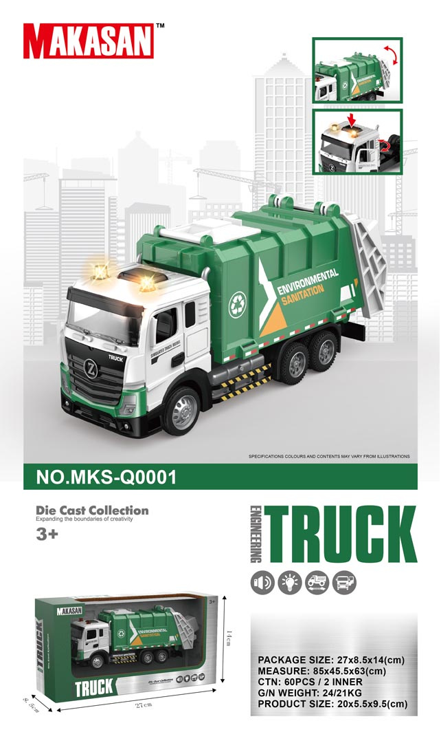Interaktivní kovový popelářský vůz s funkcí zvuku a světla pro děti od tří let. Smetiarka byla vyrobena z kovu a plastu nejvyšší kvality. Má realistické provedení. Dveře kabiny vozidla se otevírají a kolečka se snadno pohybují po podkladu. Na střeše kabiny svítí dvě světla a je slyšet zvuk práce vozidla a melodie, a poklop násypky můžeme otevírat ručně. Hračka je napájena bateriemi typu 3 x AG13 (v balení).