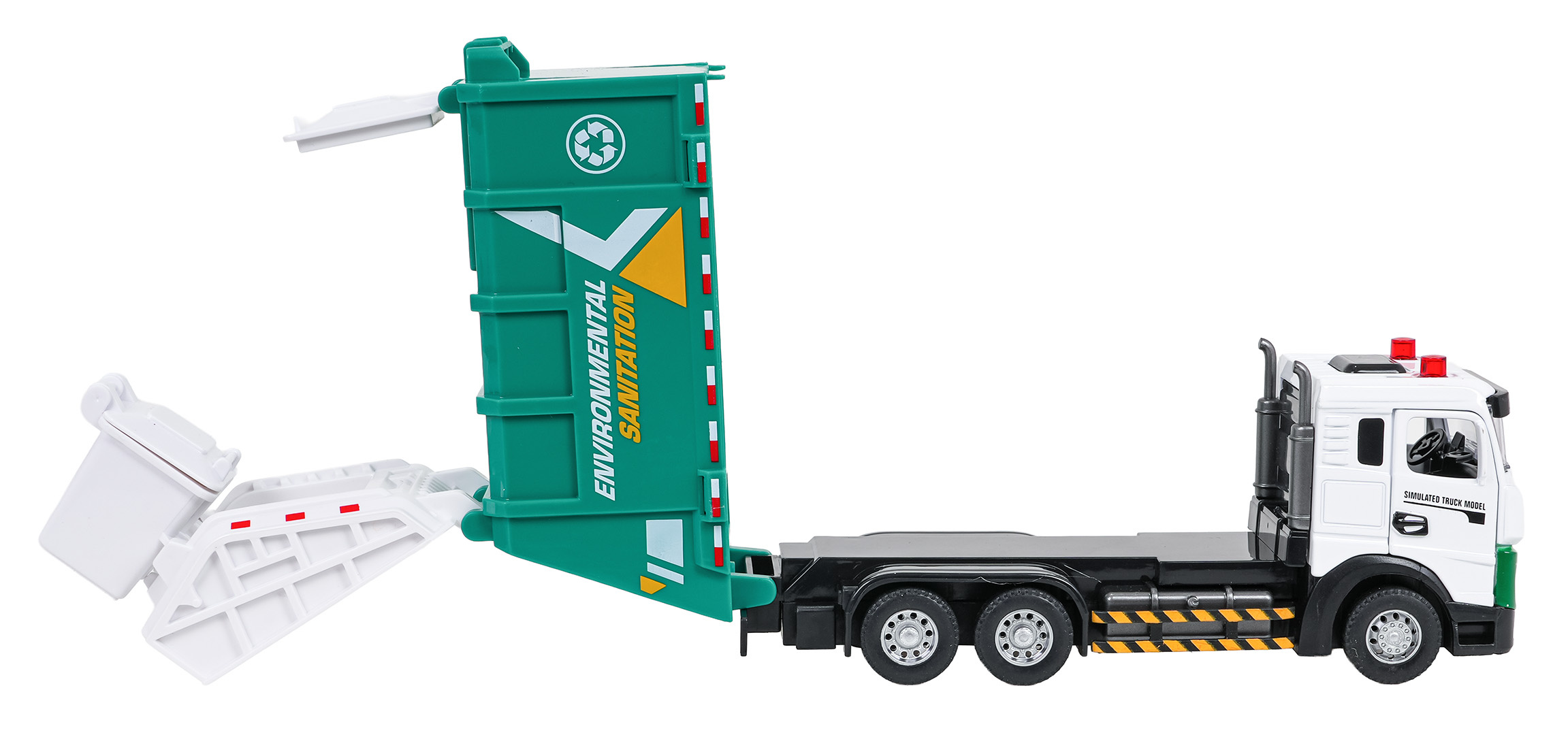 - světelné efekty: svítící světla na kabině popelářského vozu,