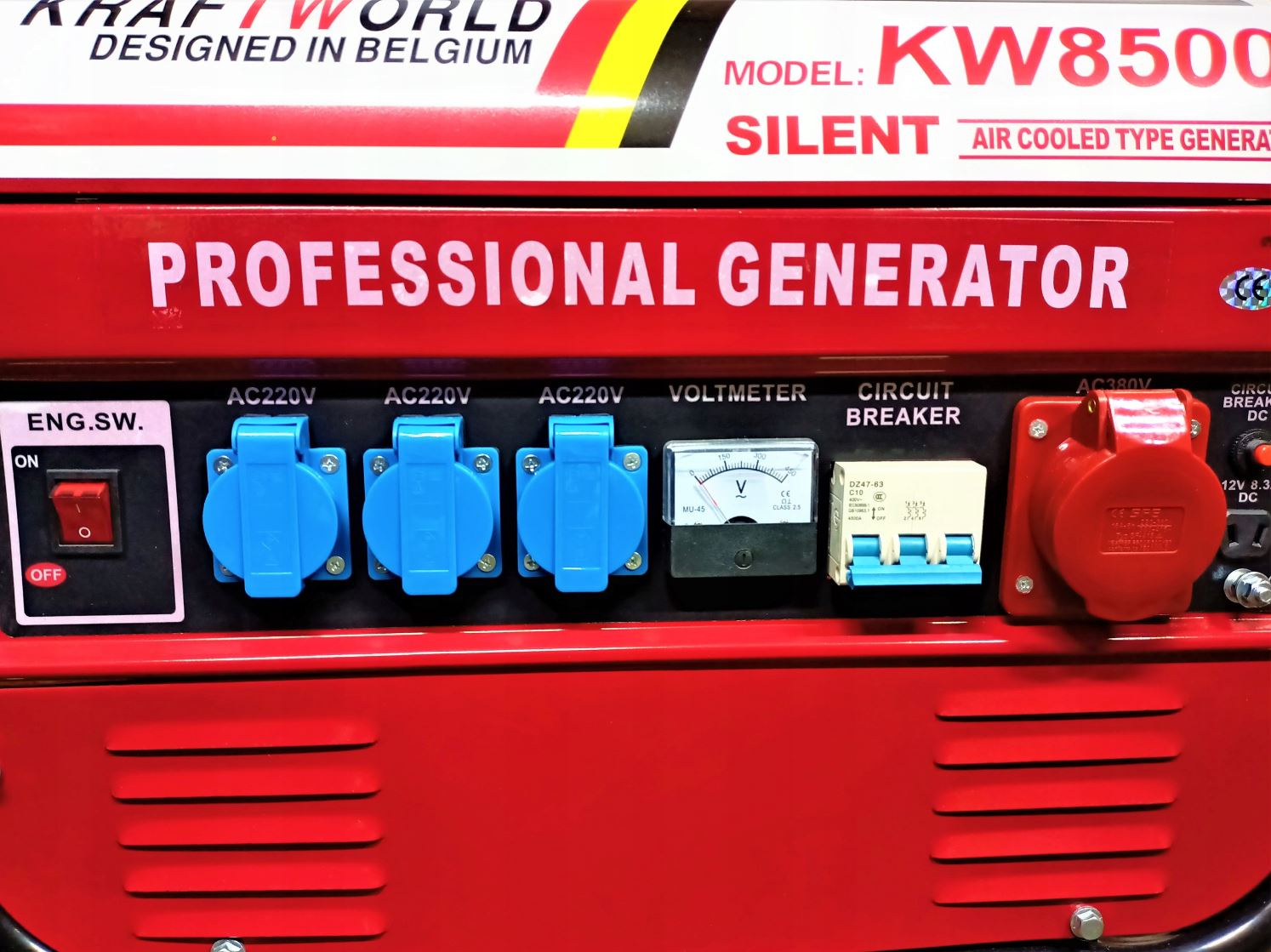 Elektrocentrála je také vybavena voltmetrem, který měří výstupní napětí, automatickou kontrolou hladiny oleje a jističem chránícím centrálu před přetížením i 12V výstupem pro nabíjení baterie. Pokud generátor nenapájí více zařízení, pracuje na nižší rychlost v době, kdy se zvyšuje zatížení, bude generátor automaticky zvyšovat rychlost a rotaci a přizpůsobí se poptávce po energii.