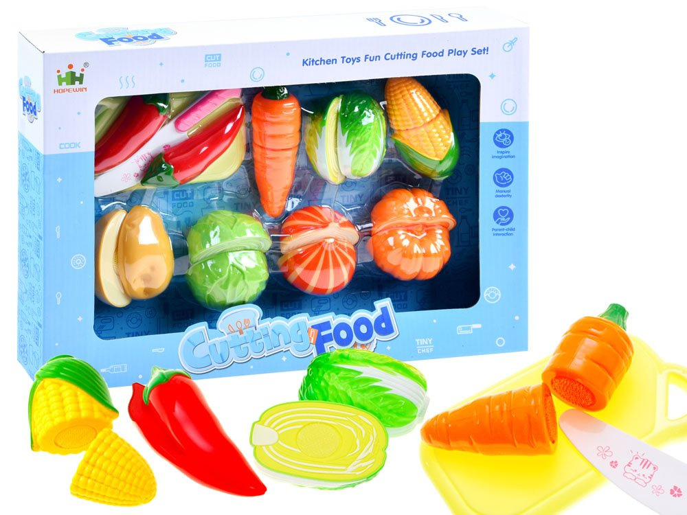 Krájení zeleniny s příslušenstvím, to je zábavný nápad pro děti, které rády pomáhají v kuchyni. Děti rády pomáhají rodičům s přípravou jídla a někdy nám chybí nápady, co můžeme dát dítěti na hraní, aby si mohlo bezpečně hrát s vařením. Proto vám nabízíme tuto praktickou sadu, s níž si můžete procvičit ruku, naučit se používat kuchyňský nůž a užít si společné vaření. Při hře na šéfkuchaře se dítě může snadno a příjemně naučit pravidla vaření a bezpečně trávit čas v kuchyni s rodičem. Děti milují vzdělávací hry, při kterých mohou napodobovat dospělé.