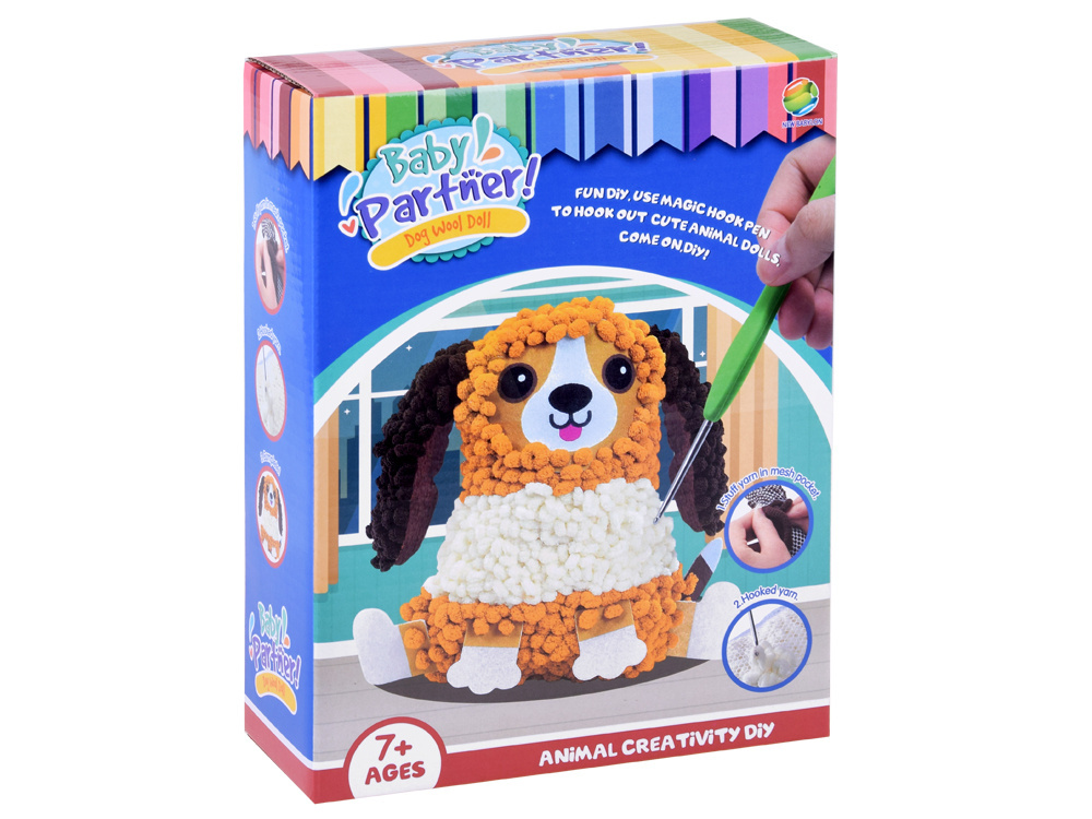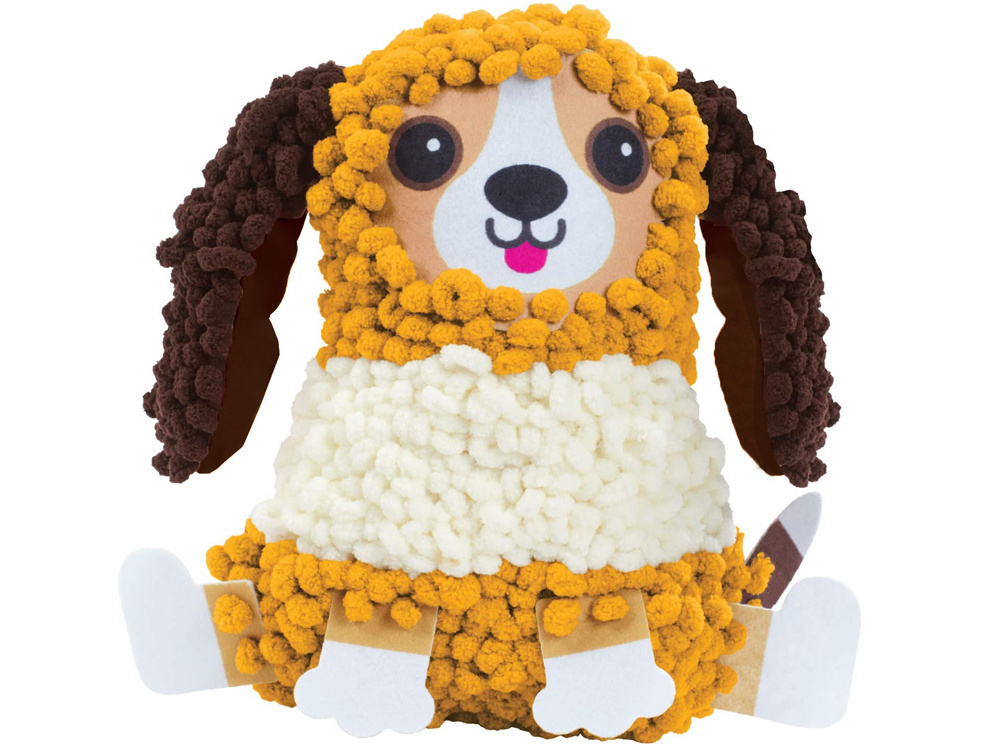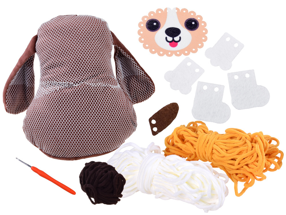 Plyšovýpolštář ve tvaru psa je skvělou volbou pro milovníky všech druhů pletení.Polštářek příjemný na dotek nevyžaduje ke zdobení použití jehly a nitě, takže je pro naše děti bezpečný. Chcete-li polštář ozdobit, jednoduše pomocí přiloženého háčku proplétejte přízi skrz síťovanou kapsu, která vyplňuje řádky, a vytvořte tak srst svého mazlíčka. Připevněte psí čumák, tlapky, ocas a boty protažením příze skrz síťku a otvory, které byly vystřiženy v plstěném materiálu.Taková práce je příjemná a poutavá.Zdobený polštářek bude krásnou dekorací každého dětského pokoje a hlavně bude vlastnoručně vyrobený, a tedy jedinečný.