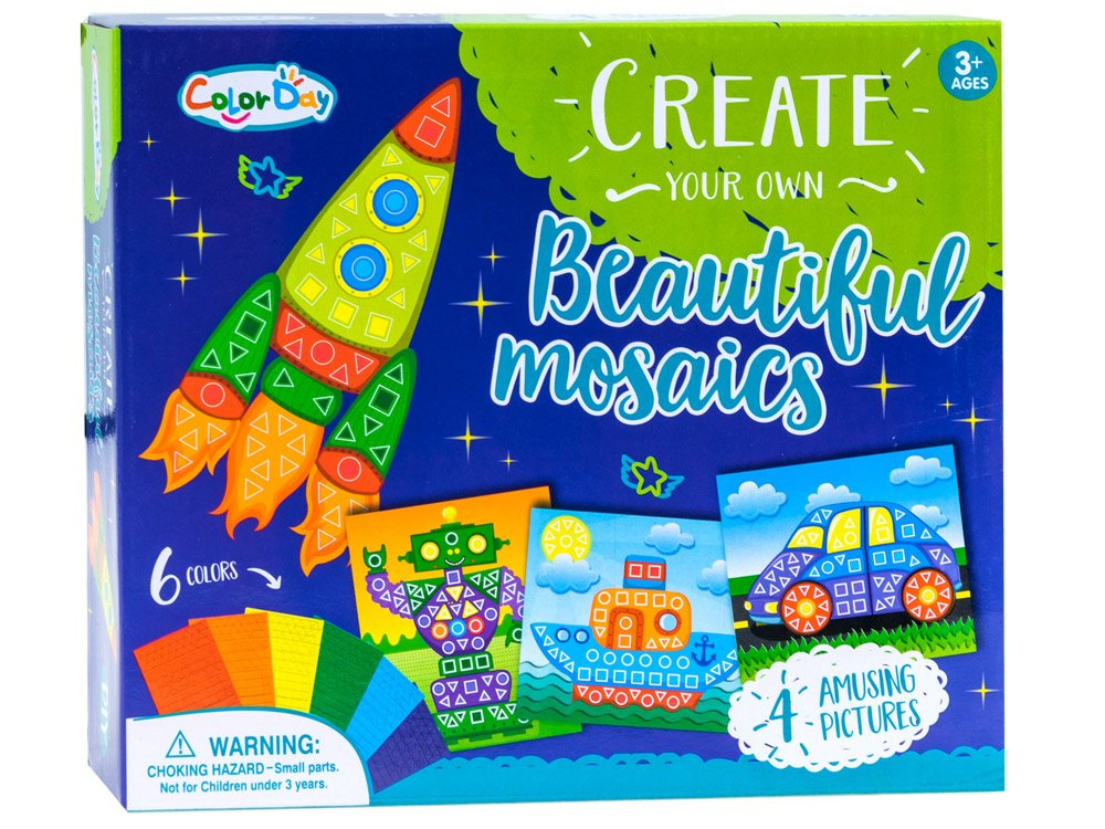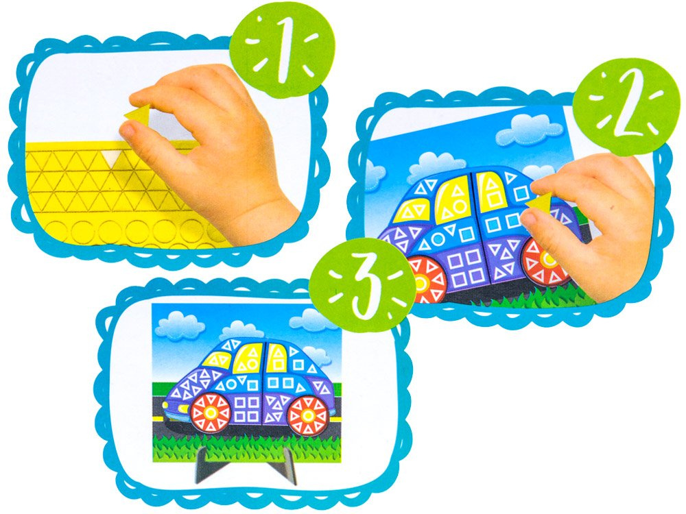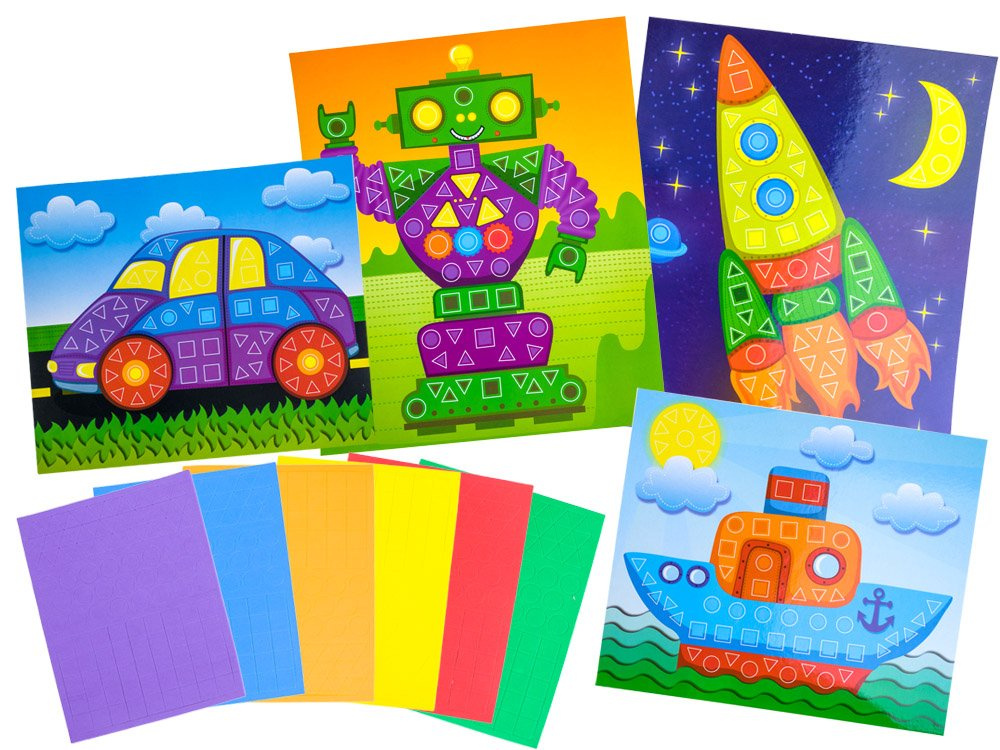 Kreativní sada pro děti, které rády tvoří. Sada skládající se z barevných obrázků, které se lepí pomocí pěnových čtverců, samozřejmě s přizpůsobením barev a tvarů.