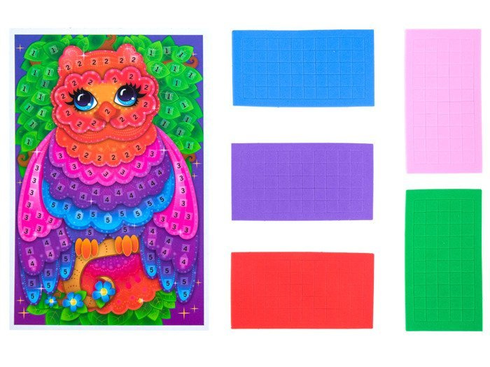 Kreativní sada pro děti, které rády tvoří. Sada se skládá z barevného obrázku, který se lepí pěnovými čtverci, samozřejmě s přizpůsobením barev a tvarů.