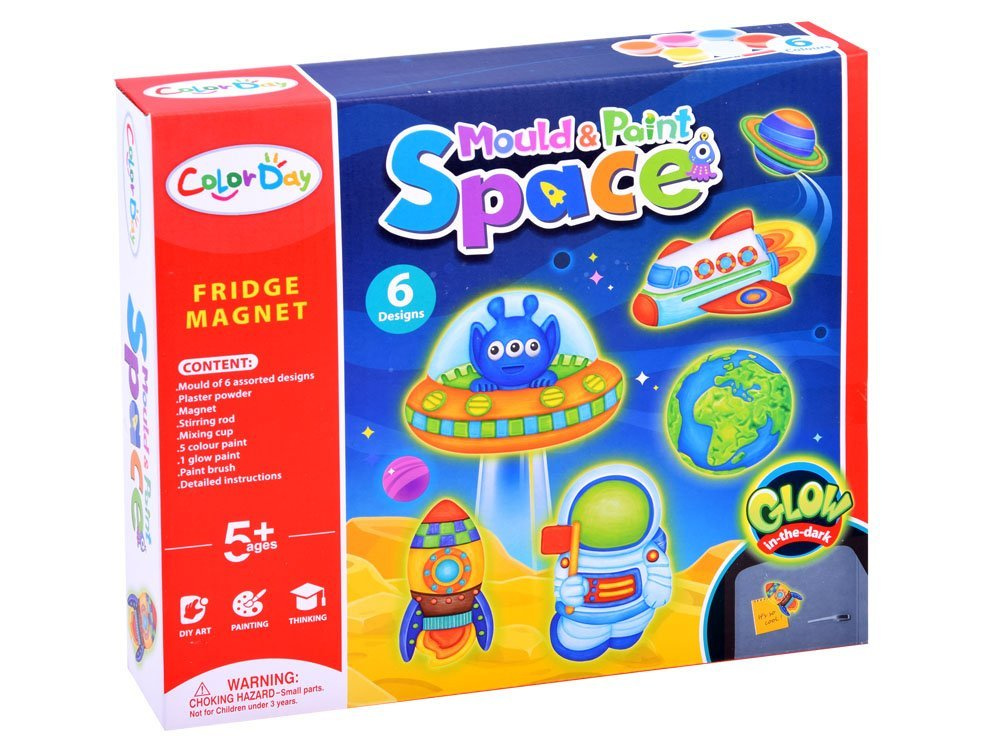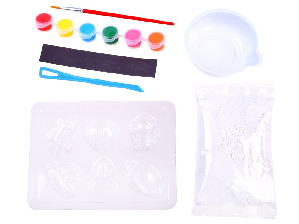 Jedná se o skvělou sadu pro kreativní hru na výrobu vesmírných magnetek na ledničku. Dítě si musí odlitek samo připravit a poté jej namalovat podle svých představ.