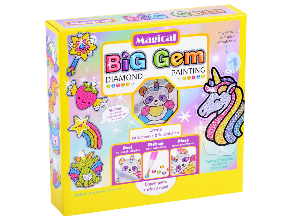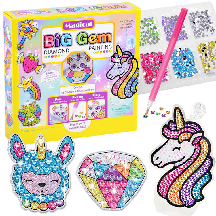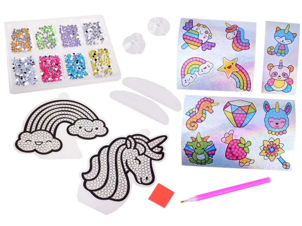 Kreativní sada MAGIC s diamantovou výšivkou je nejmódnější kreativní hrou pro děti v této sezóně. Sada umožňuje vytvářet nádherné vzory s pohádkově barevnými diamanty. Hra spočívá v přiřazování správných barev diamantů a jejich přenášení na šablonu pomocí lepidla a speciálního pera. Po uspořádání dílků vznikne nádherná barevná dekorace. Pomocí přiložených plastových talířků a silikonových přísavek s háčky lze hotová díla umístit například na zeď. na psacím stole, na poličce, zavěsit je na sklo či zrcadlo nebo si jimi ozdobit oblíbený sešit, složku či diář.
