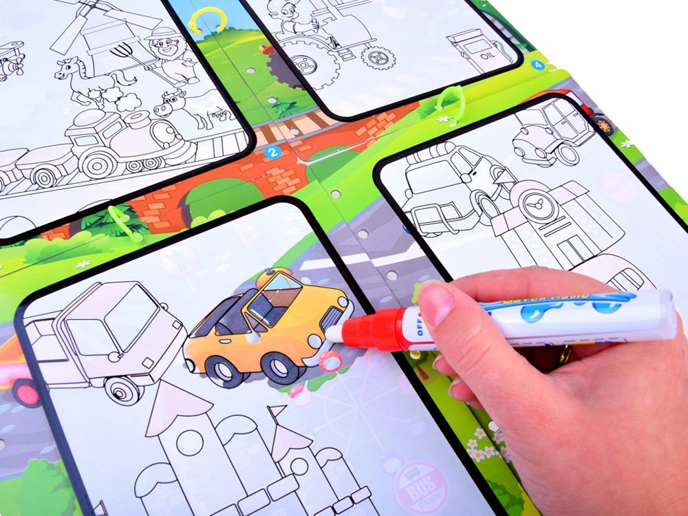 Po skončení hry odložte kartičky stranou, protože když stránky uschnou, celý obrázek zmizí a můžeme ho znovu vymalovat. Díky tomu můžeme hru opakovat pokaždé znovu a znovu. Hračka ideální pro kreativní děti, které rády tvoří.