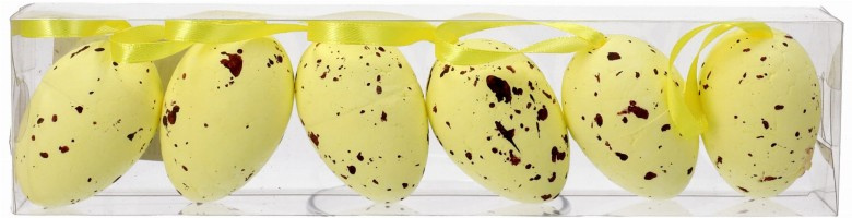 Křepelčí vejce z polystyrenu k zavěšení, sada 6 ks., to dekorativní prvky, které dokonale zapadají do velikonočního svátečního aranžmá. Vyrobená z lehkého polystyrenu, vajíčka mají přirozený vzhled křepelčích vajec a díky otvoru v horní části je lze snadno zavěsit. Ideální k ozdobení větviček ve váze, věnců nebo jako závěsné dekorace v domě. Jsou to dokonalé doplňky pro vytvoření jedinečné atmosféry během Velikonoc.