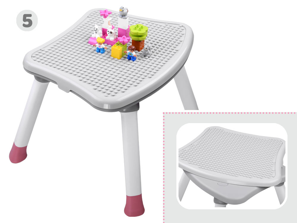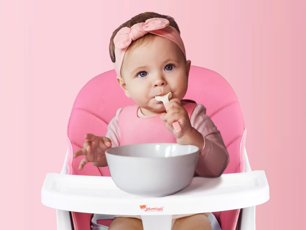 - židlička s táckem, na kterém může dítě jíst samo, když má jídlo na tácu, a víme, že batolata ráda ochutnávají jídlo mnoha smysly; tác je odnímatelný a snadno se čistí. A také krmení batolete, aniž by se muselo ohýbat.