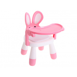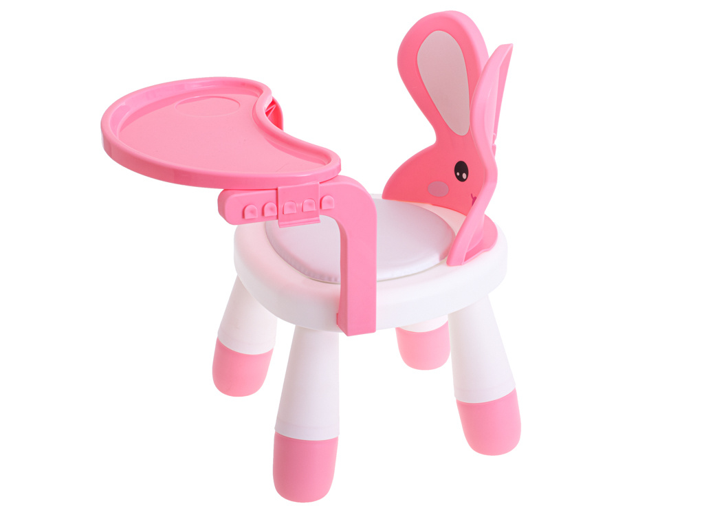 Moderní design upoutá pozornost batolete a povzbudí ho, aby jedlo ve vyhrazeném prostoru. Můžete si být jisti, že vaše dítě nebude chtít z této židle slézt. Ergonomický tvar "nutí" dítě při jídle zaujmout správný a bezpečný postoj. Králičí uši budou dokonalou oporou zad. Pohodlné sedátko s polštářkem zajistí vašemu dítěti pohodlný odpočinek. Stůl lze s úspěchem použít, když si vaše dítě hraje a vytváří svá první umělecká díla. Vymezí zónu na hraní a vy budete mít jistotu, že je vaše batole v bezpečí, zatímco vy se musíte věnovat domácím pracím. Židle roste s vaším dítětem! Malé děti rostou a mění se velmi rychle. Dvoustupňová možnost nastavení výšky židle umožňuje přizpůsobit se potřebám rostoucího dítěte. Chcete-li zvýšit výšku židle, stačí vyměnit opěrky nohou za vyšší. Kromě toho lze stůl zcela demontovat, takže dítě může sedět pouze na židli.Sada je vyrobena z vysoce kvalitního plastu, který zaručuje dlouhou životnost. Robustní konstrukce a pohodlné sedadlo potěší rodiče i batolata. Celá věc se snadno čistí. Židli stačí otřít vlhkým hadříkem nebo ji lze v případě většího znečištění umýt pod tekoucí vodou. Židličku lze snadno složit a je lehká, takže si ji můžete vzít s sebou na návštěvu k babičce nebo na dovolenou. úspěšně nahradí velké a těžké krmicí židle.