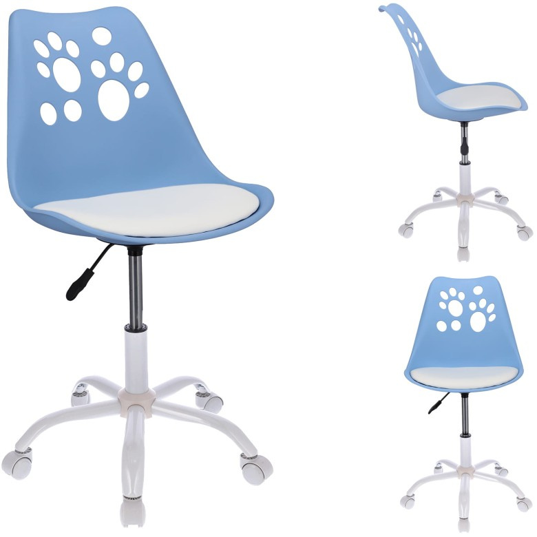 Židle z kolekce JOY Dokonale tvarované opěradlo s motivem psích tlapek v kombinaci s měkkým polštářem umístěným na sedáku zajišťuje pohodlí, zatímco pětihvězdicová základna zakončená malými kolečky poskytuje skvělou stabilitu a chrání povrch před poškrábáním. Židle je vybavena pohonem, který umožňuje nastavit výšku sedadla podle potřeby.