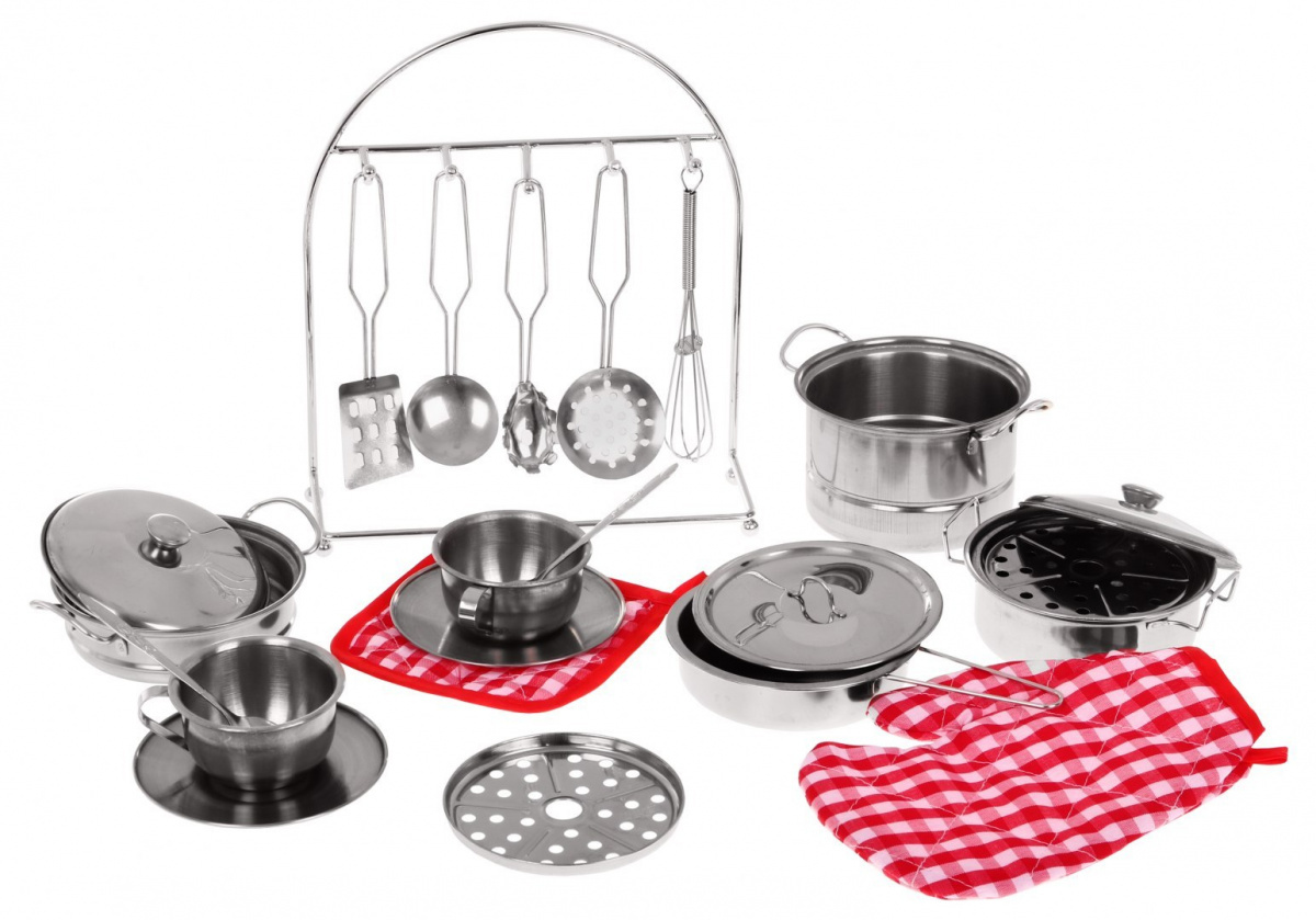 KOVOVÁ KUCHYŇSKÁ SOUPRAVA 23 el. - Kuchařská rukojeť + kuchyňská linka (555-BX009)