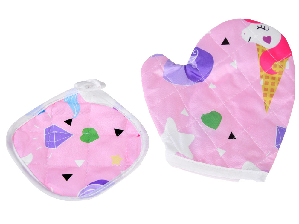 Roztomilá zástěra s jednorožcem a doplňky se bude hodit každému malému pomocníkovi v kuchyni. Sada obsahuje vše potřebné k tomu, abyste mamince bezpečně a zajímavě pomohli připravit jídlo nebo upéct koláče a sušenky.