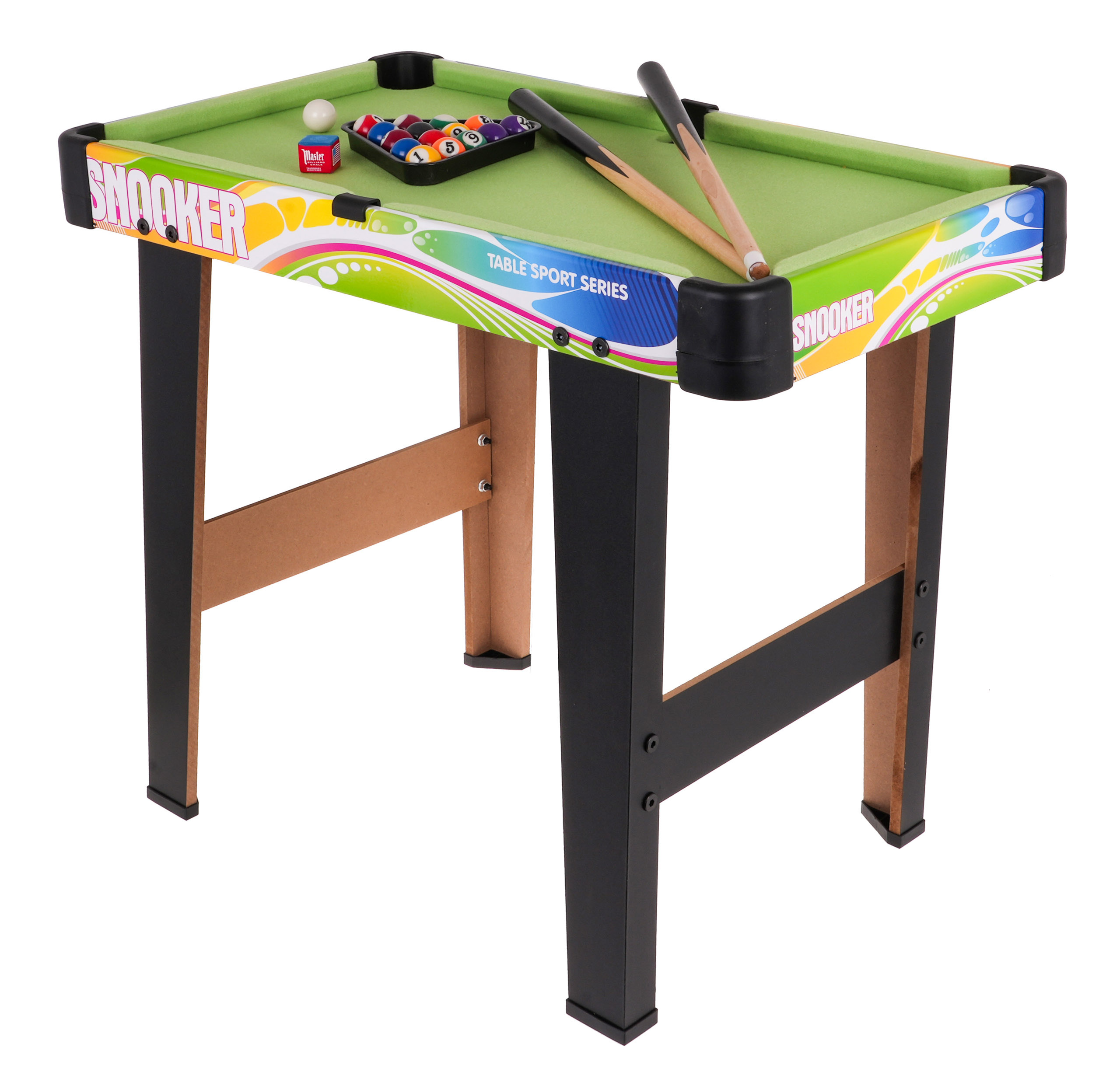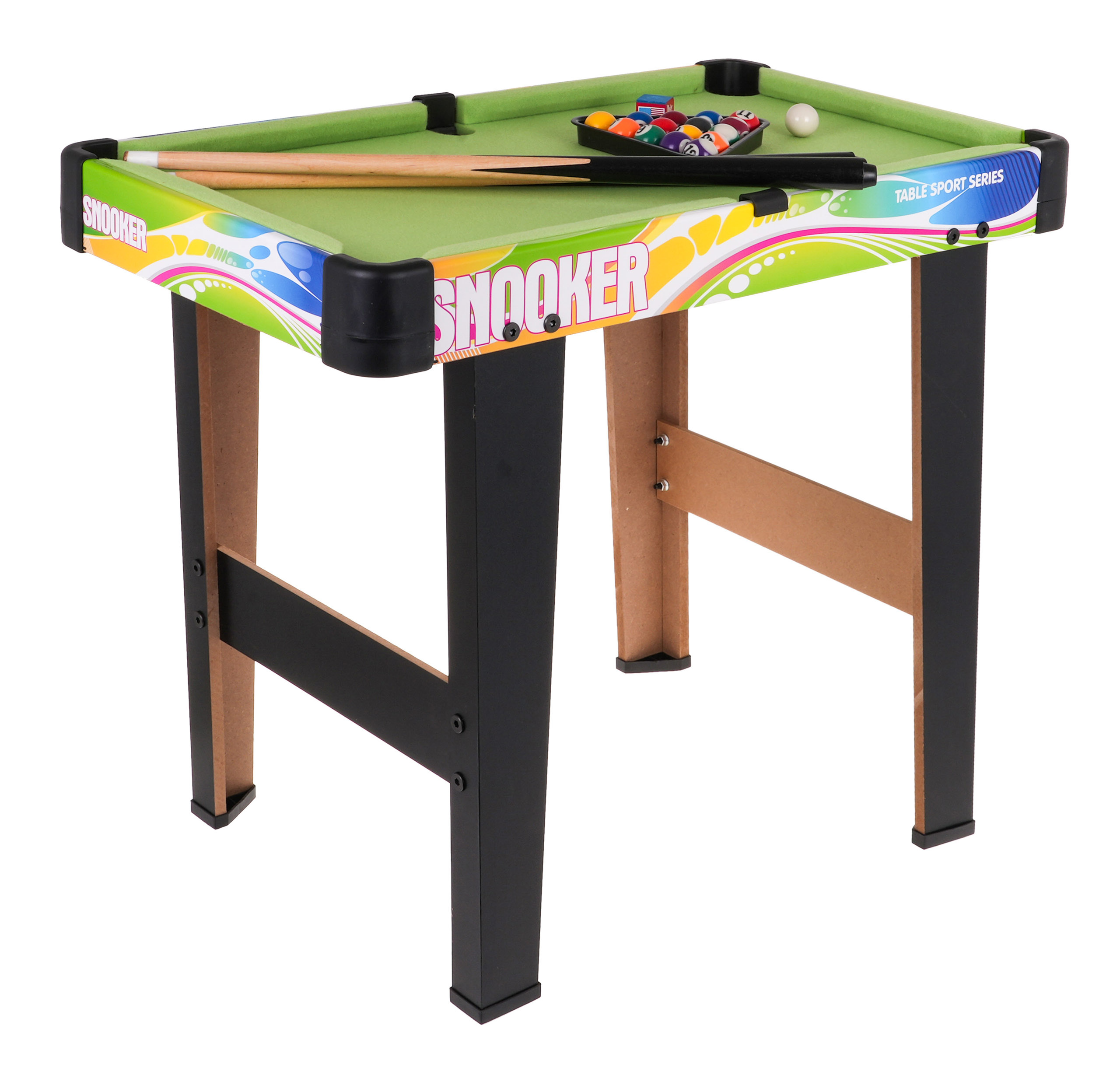 Úžasný kulečníkový stůl s příslušenstvím v ceně pro děti od 8 let. Stůl byl vyroben z pevných materiálů (MDF) s důrazem na detail. MDF desky jsou odolné proti poškrábání a deformacím. Povrch stolu byl pokryt zelenou látkou. Na okrajích jsou umístěny otvory, do kterých se vhazují kuličky.
