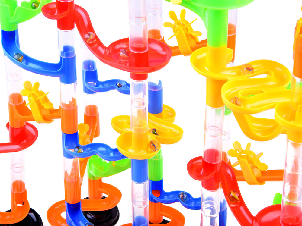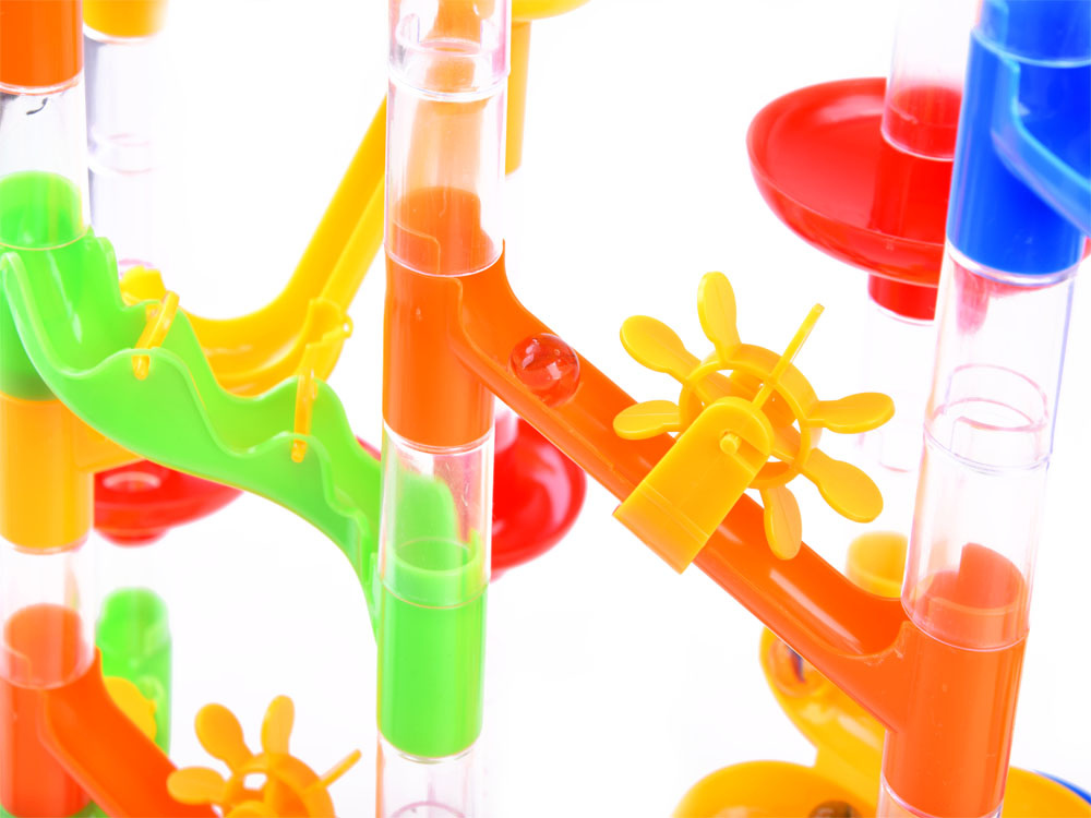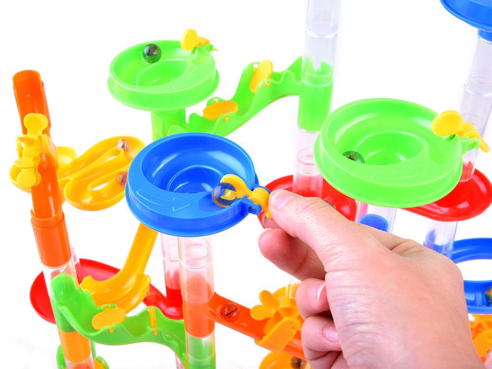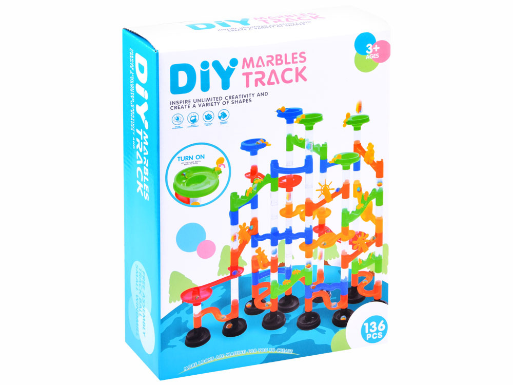 Marble je kroucená kuličková dráha, která se skládá až ze 136 prvků! sada vyžaduje vlastní sestavení, abyste mohli pokračovat v napínavé hře s kuličkami. Vzrušení zaručeno!Sada je celá vyrobena z barevného plastu, dílky se snadno připínají k sobě a vytvářejí struktury pro točené spirály, takže se po nich kuličky mohou volně kutálet, kutálet, řítit!Marble je kuličková dráha složená z ohebných dílů a 31 barevných kuliček, s nimiž může dítě vytvářet jedinečné a neopakovatelné trasy. Děti mohou reprodukovat modely nakreslené na krabici nebo experimentovat a stavět vlastní stavby: skluzavky, mosty, sloupy, turnikety, dvojité spirály a komíny lze různě kombinovat.Hračka stimuluje kreativitu, prostorové uvažování a rozvíjí manuální dovednosti.Při hře si dítě také rozvíjí logické myšlení, plánování, rozvíjí psychomotorickou koordinaci a motoriku.