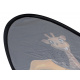 Závěs je vyroben z černé poloprůhledné síťoviny se vzorem. Na druhé straně je vrstva průhledného statického filmu.