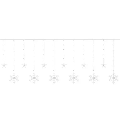 SVĚTELNÁ ZÁCLONA SNĚHOVÁ VLOČKA rampouchy A HVĚZDY 138 LED / BARVA SVĚTLA TEPLÁ BÍLÁ