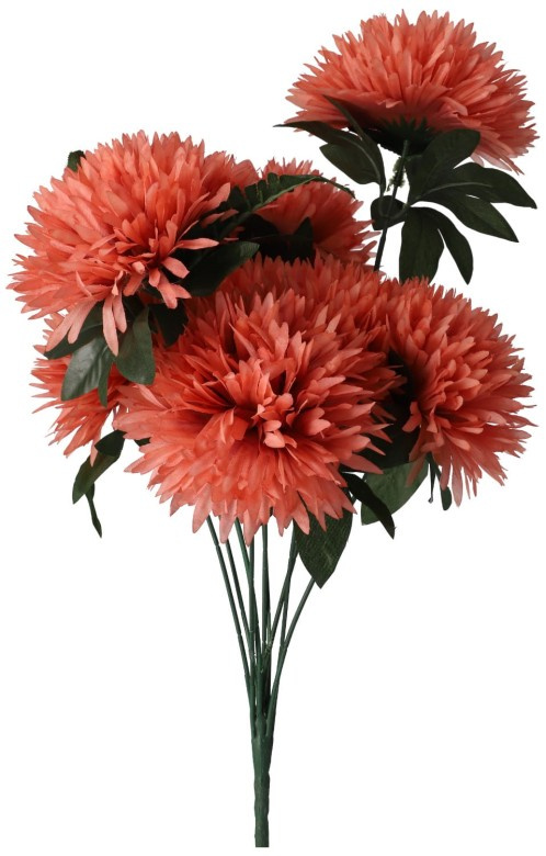 Kytice o výšce 60 cm se skládá z plných, růžových květů chryzantém, které okouzlují svým přirozeným vzhledem a intenzivní barvou. Pečlivě zpracované okvětní lístky a realistické detaily činí z kytice elegantní ozdobu, která přináší teplou, jarní atmosféru do každé místnosti. Dokonalá volba do obývacího pokoje, kanceláře nebo na stůl.