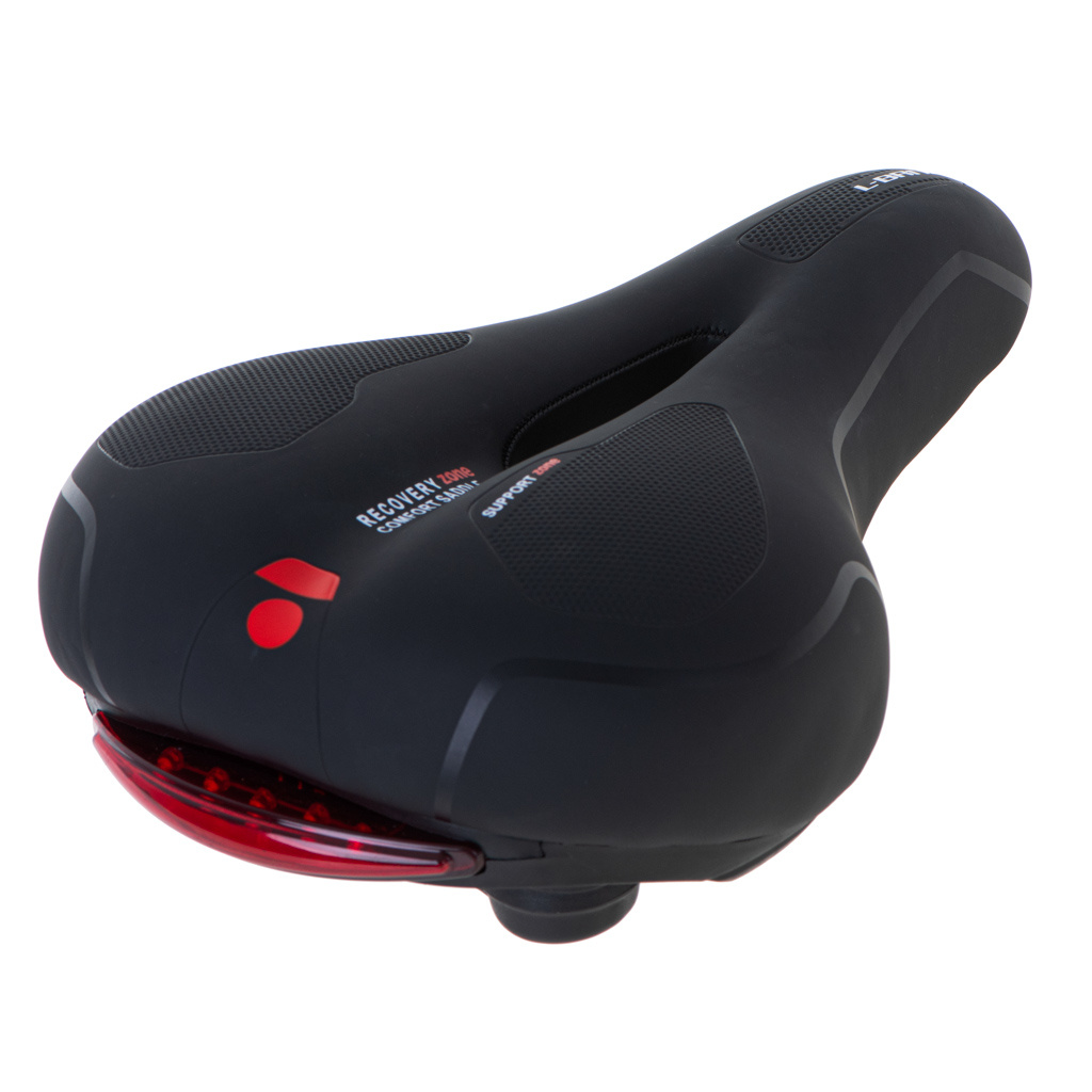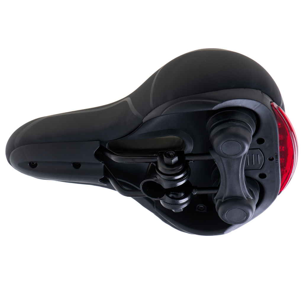 Navíc LED světlo na zadní straně sedla poskytuje dodatečnou bezpečnost při jízdě na kole, zejména po setmění.