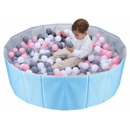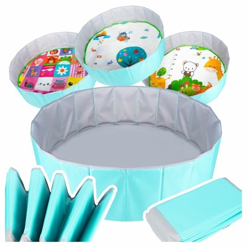 Suchý bazén - ohrádka s míčky pro děti. Díky velkému průměru a vysokým stěnám umožní skvělou zábavu bez rizika rozsypání a ztráty míčků. Může sloužit jako zahradní nebo pokojová hračka. Po složení ohrádka zabírá velmi málo místa. Může také sloužit jako kontejner na hračky. Rozměry po rozložení: průměr: 100 výška: 30 cm Rozměry složeného bazénu: 34x15,5x11 cm Praktický obal na bazén v sadě. Oboustranná podložka s barevnými potisky na dno bazénu v sadě (náhodný vzor). Produkt zabalený v dalším fóliovém obalu - připravený k odeslání. Množství ks. na paletě: 108